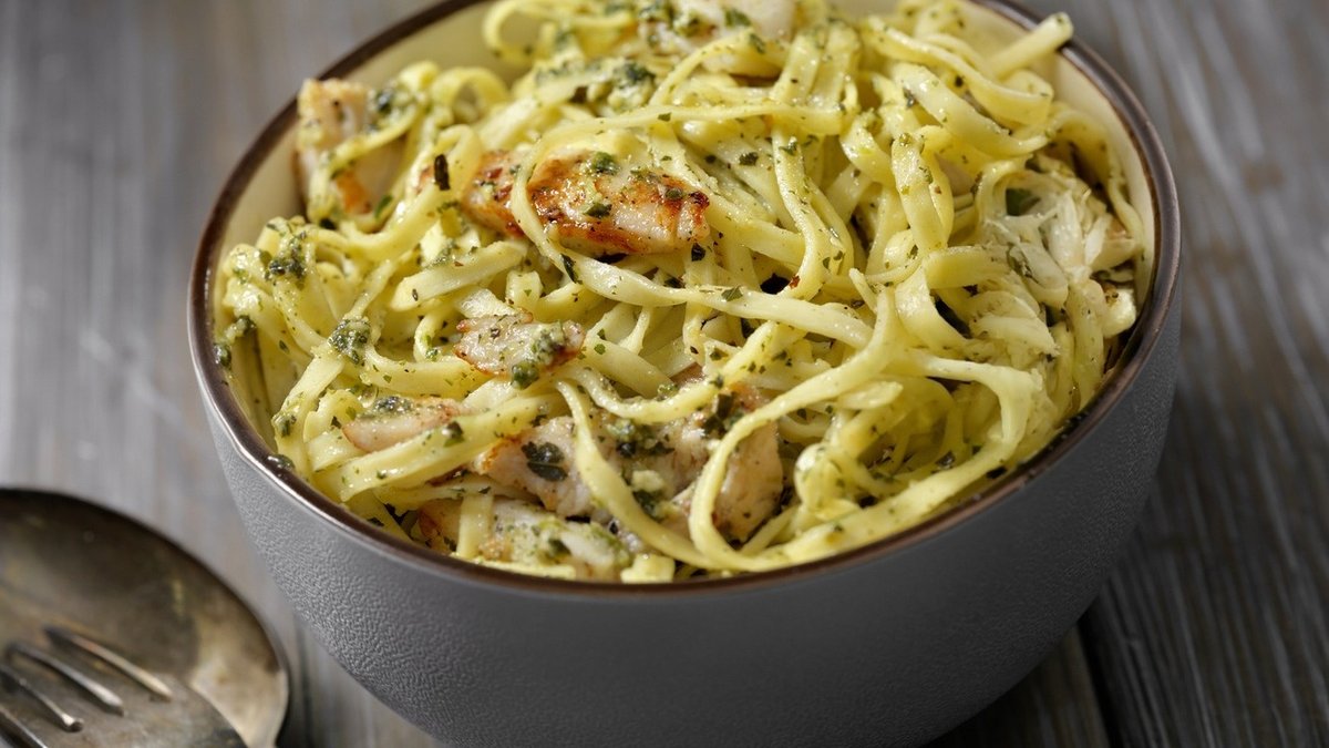 rántott csirke - tejszín - Gnocchi A kép illusztráció
