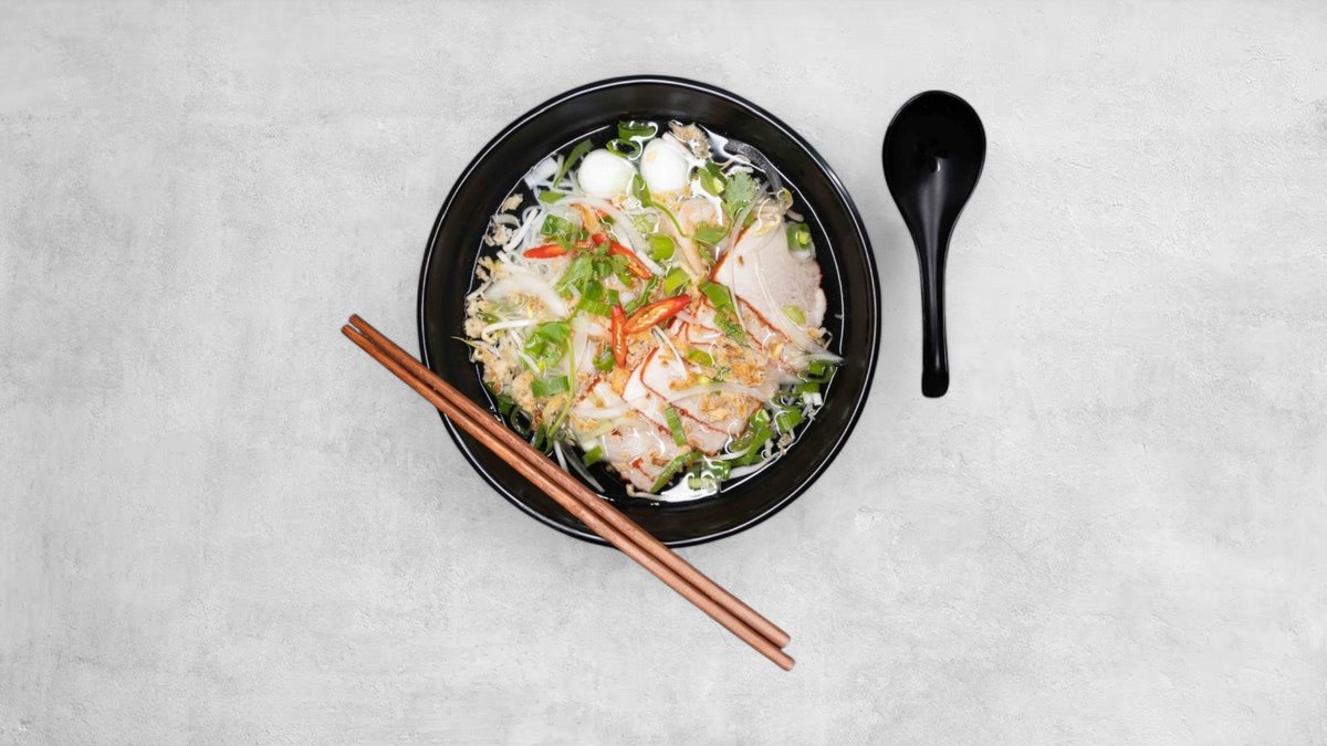 fűszeres sertés, garnélarák, tojás, pirított hagyma pork, shrimp, egg, roasted onion