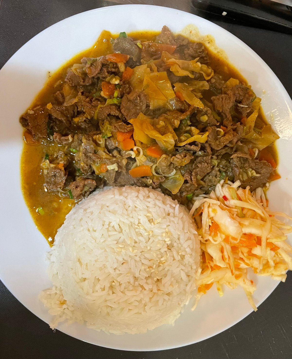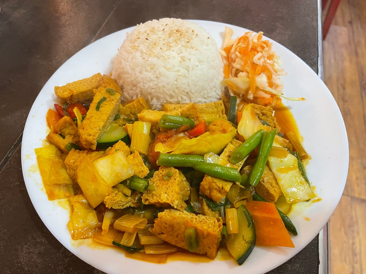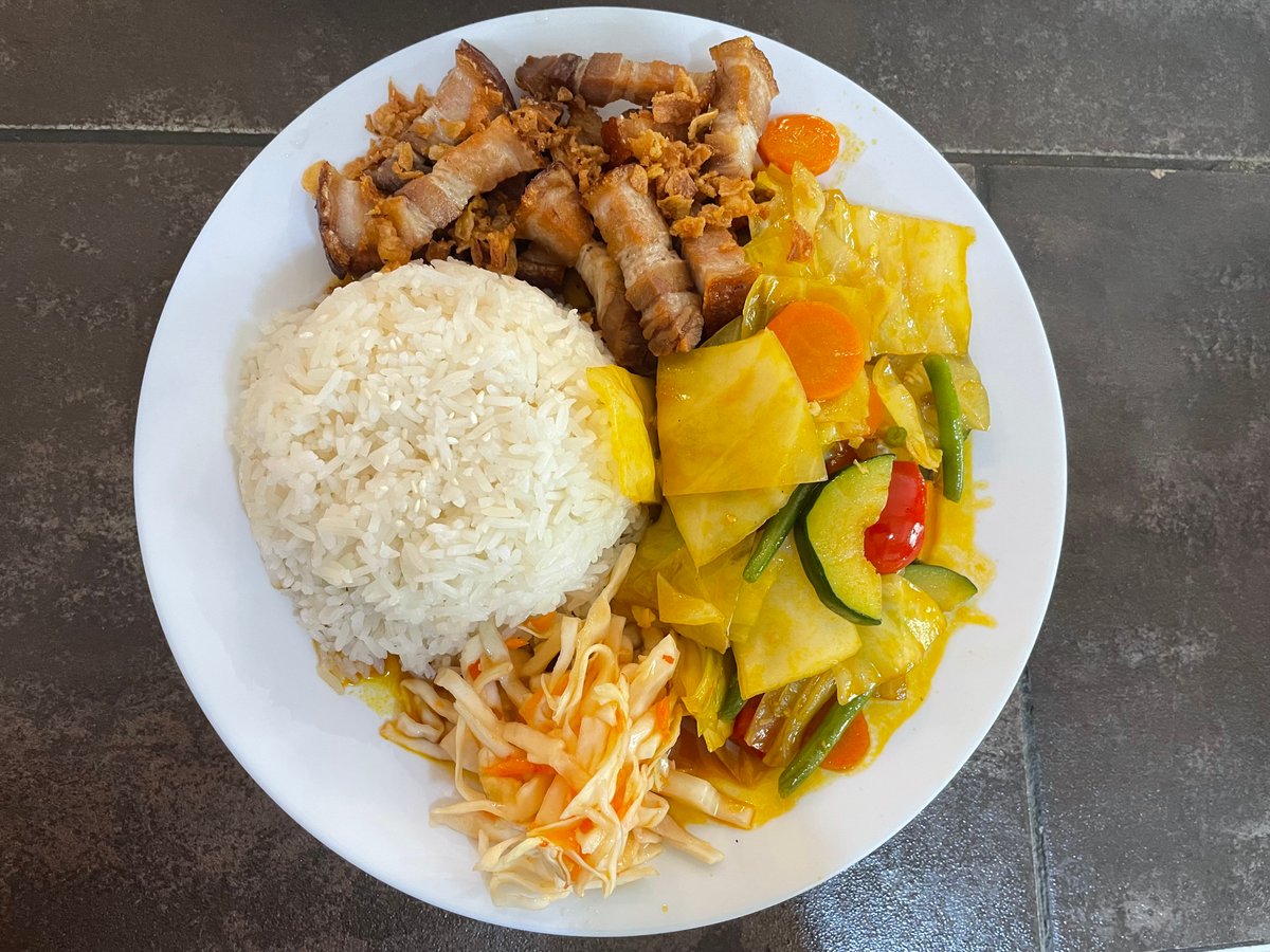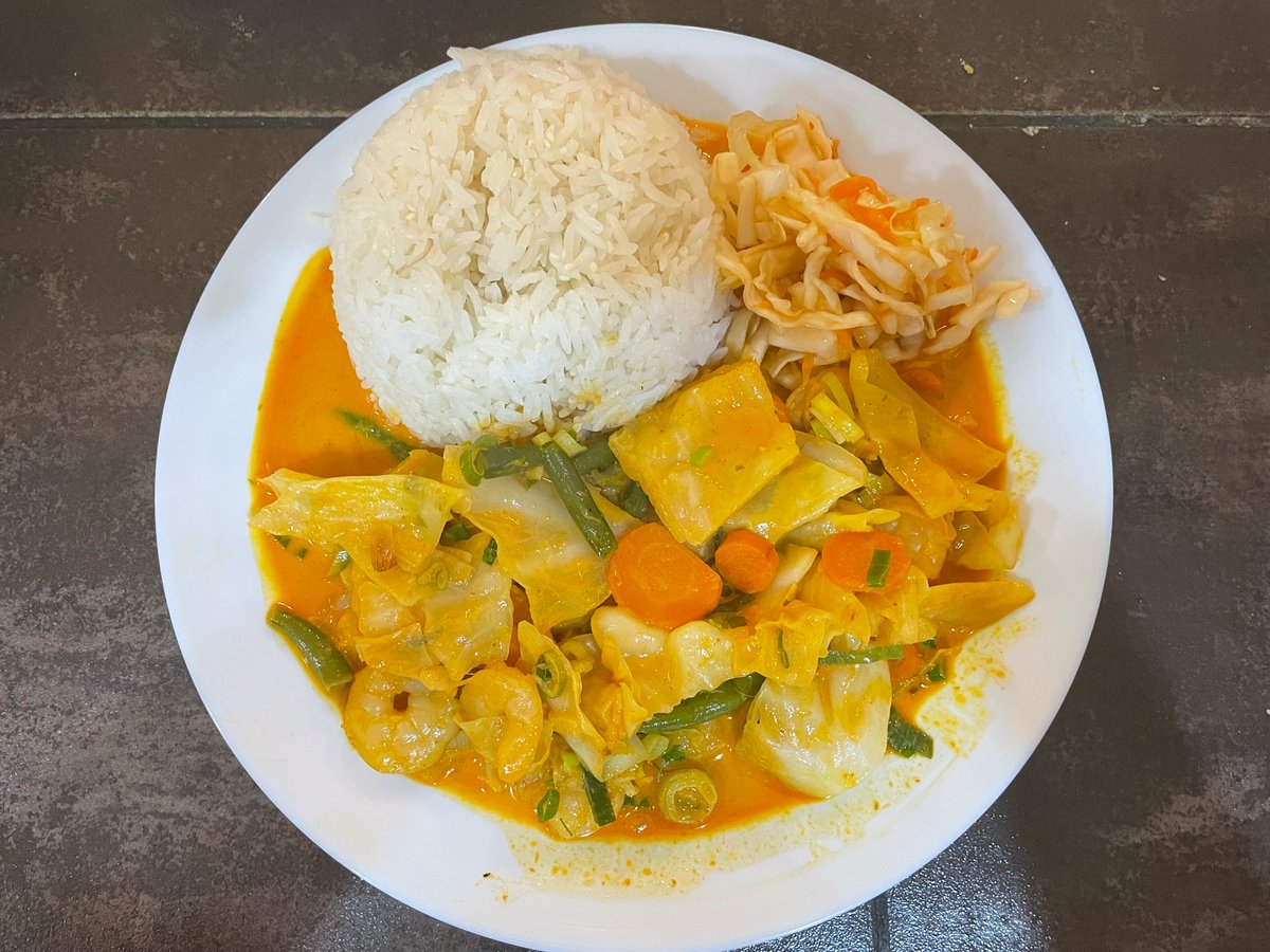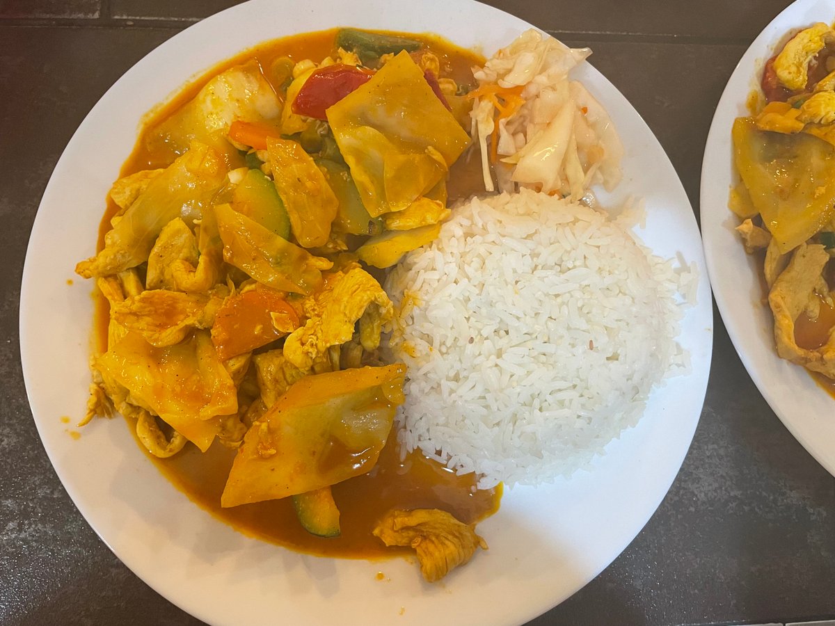 23. Currys, kókusztejes csirke rizzsel, salátával