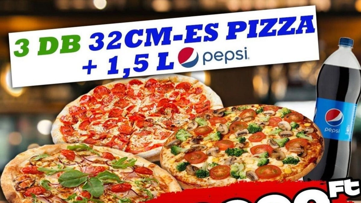 2 db 32 cm-es Pizza, Ajándék 1 db 1,5L Pepsi