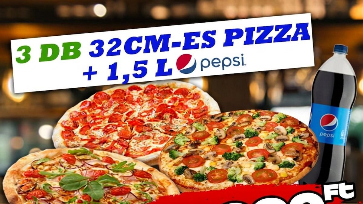 3 db 32 cm-es Pizza + 1 db 1,5L Pepsi