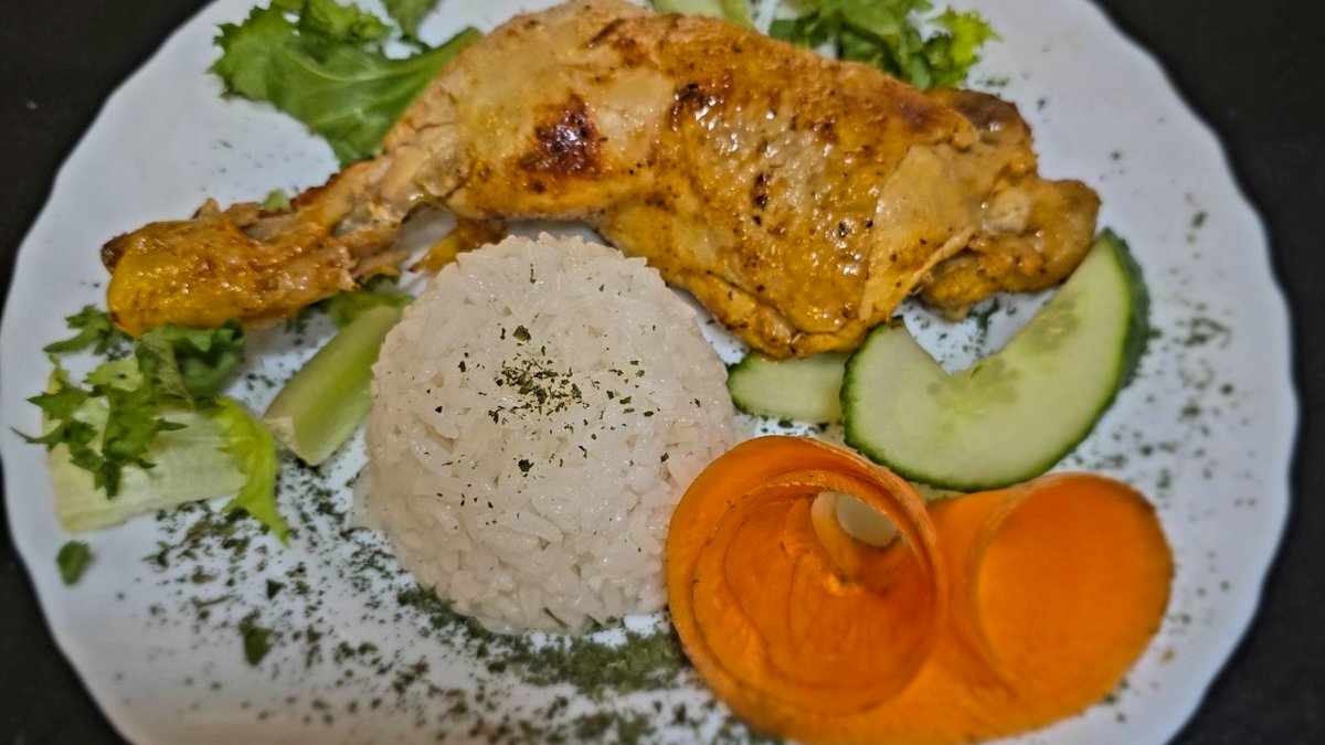 friss saláta, sárgarépa, koktélparadicsom, fűszeres csirke csíkok, ananász, kukorica, tartár, Bake Rolls kenyér-