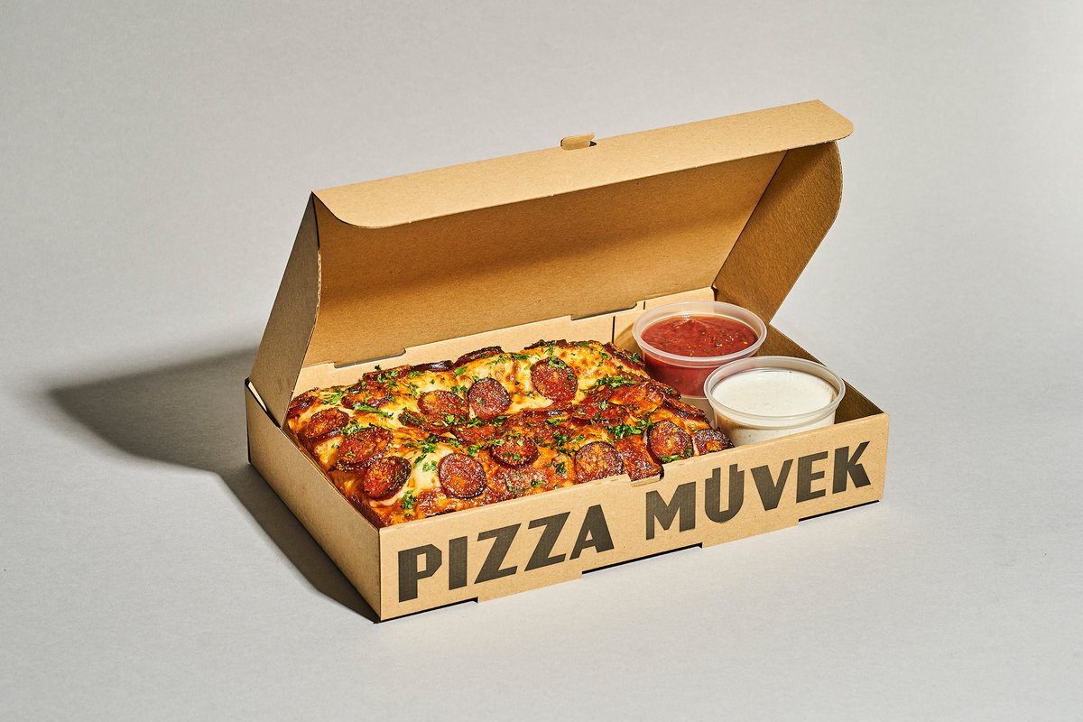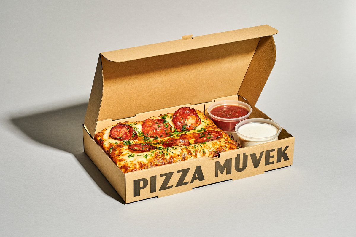 Minden pizzához jár egy 80 ml-es tejfölös-fokhagymás szósz és egy 80 ml-es paradicsomos szósz.