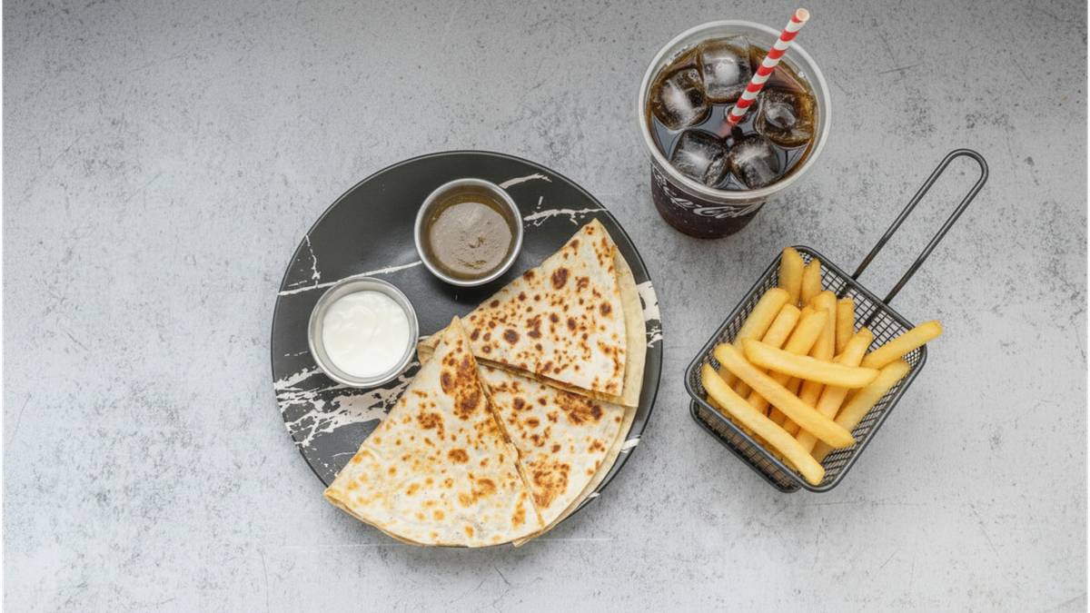 Quesadilla + hasábburgonya + Coca Cola 0,33l