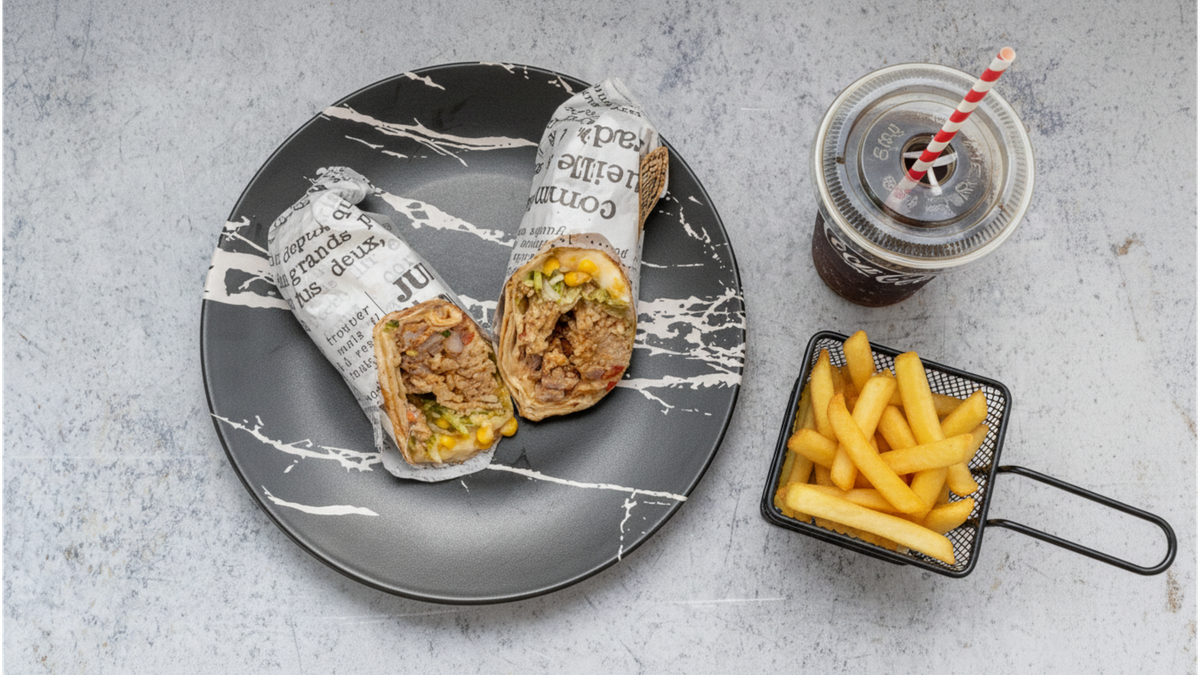 Burrito + hasábburgonya + Coca Cola 0,33l