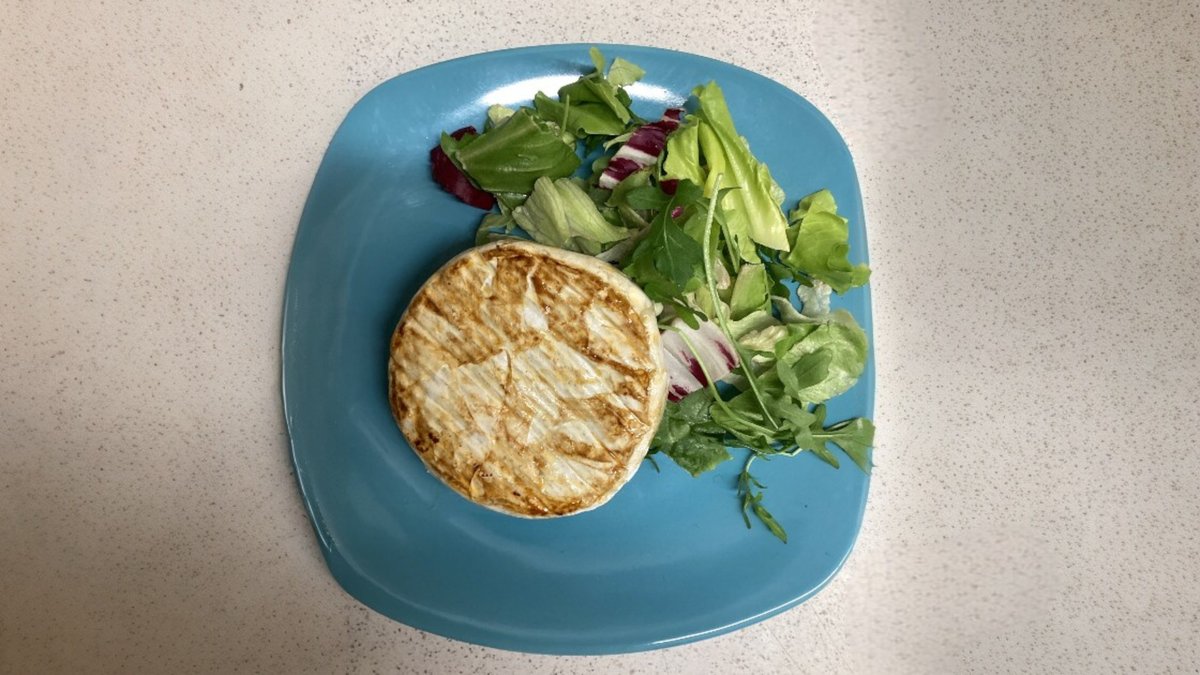 Camambert sajt grillezve, háromféle választható hideg körettel.