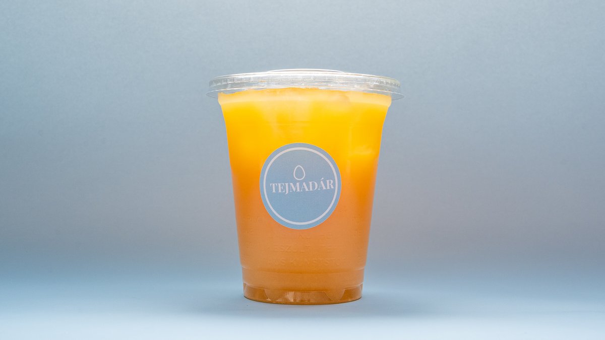 Narancslé gyümölcshússal. Sűrítményből készült. Gyümölcstartalom: 100%