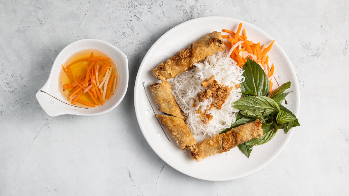 Vega tavaszi tekercs salátával, rizstésztával és szósszal