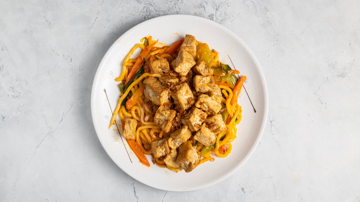 Friss pak choi és lágy tofu wokban pirítva, könnyű ázsiai fűszerezéssel.