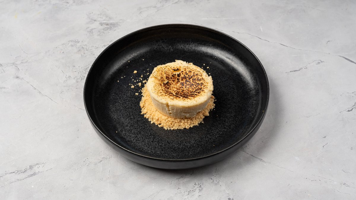 Sült baszk sajttorta, kéksajttal és piros gyümölcsös szósszal