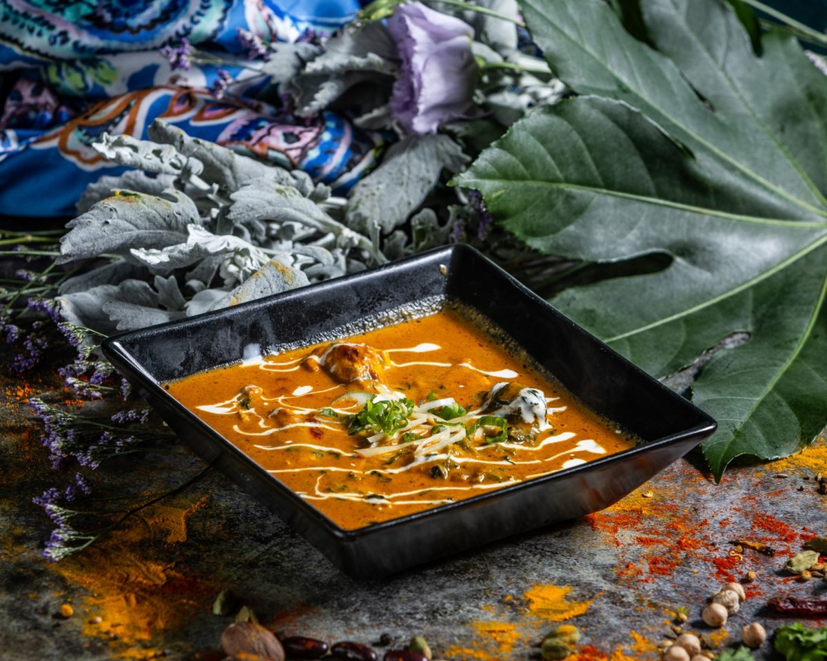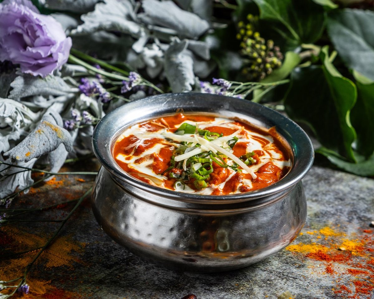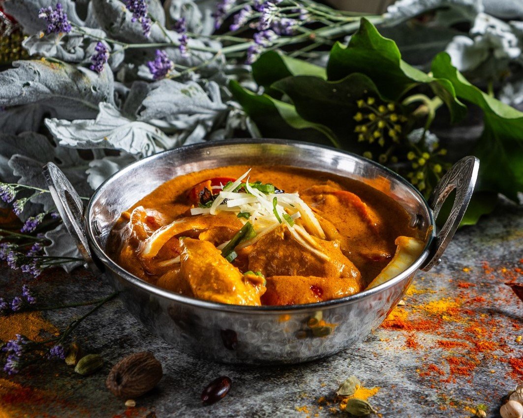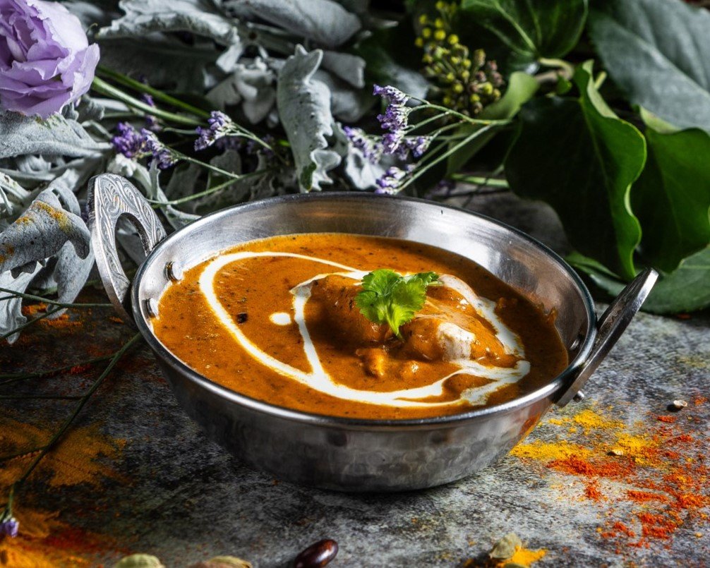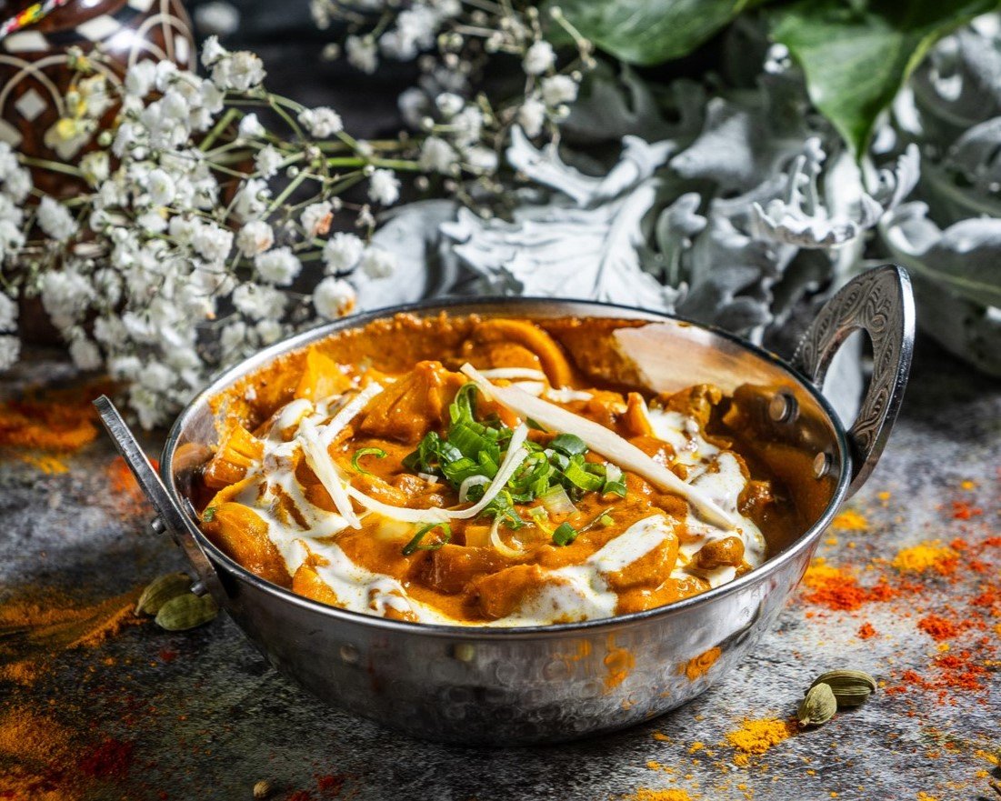 Filézett tandoori csirkedarabok, vajas-tejszínes szószban elkészítve // Tender pieces of boneless tandoori chicken cooked in a buttery and creamy sauce