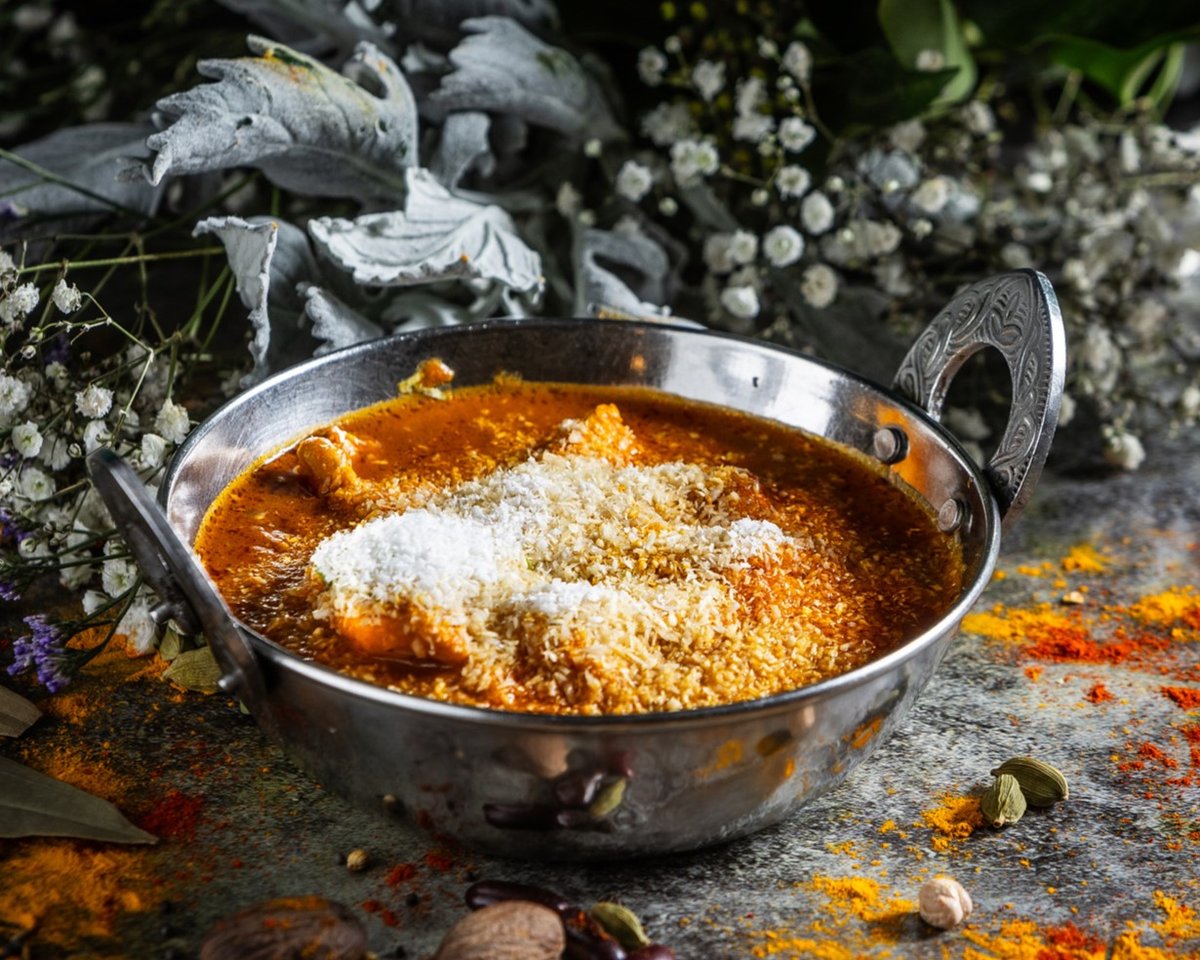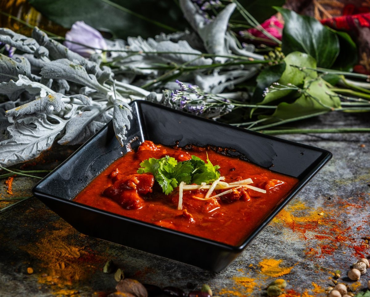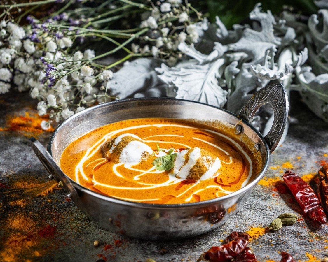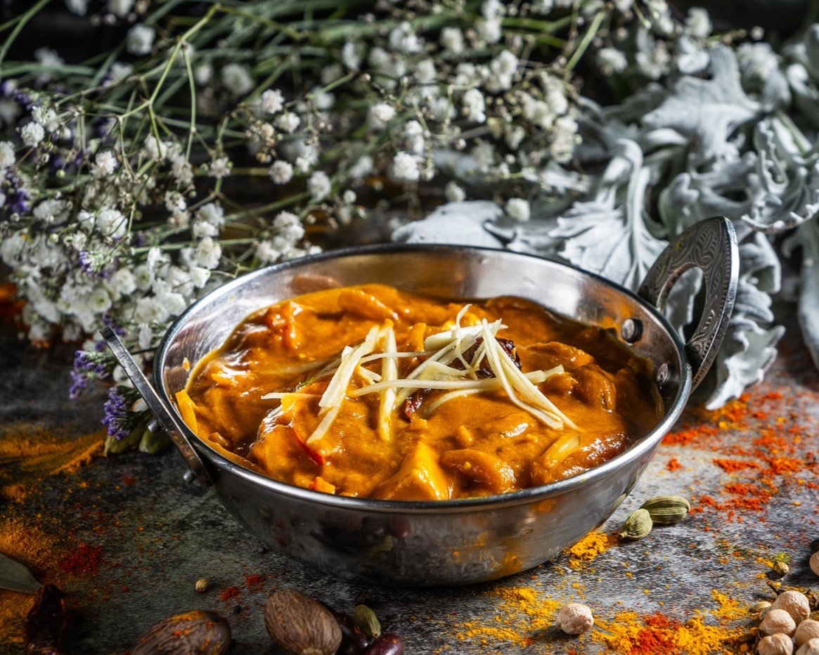 Filézett tandoori csirkedarabok, vajas-tejszínes szószban elkészítve // Tender pieces of boneless tandoori chicken cooked in a buttery and creamy sauce