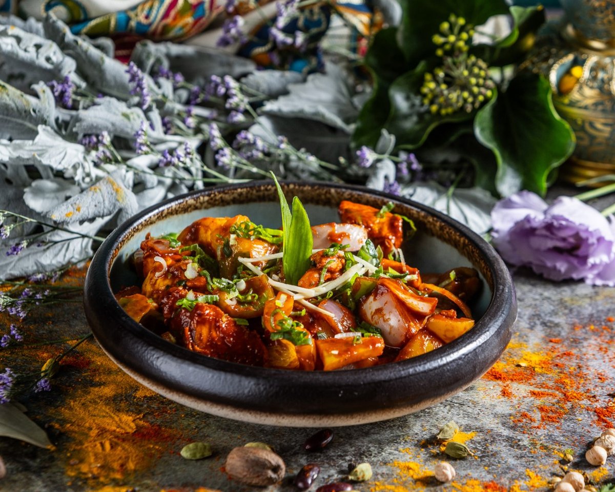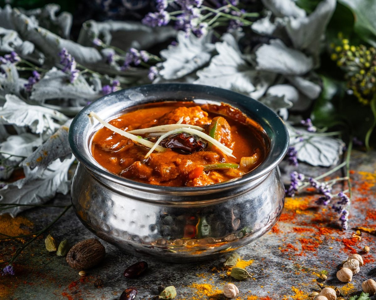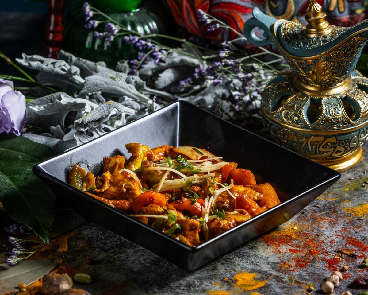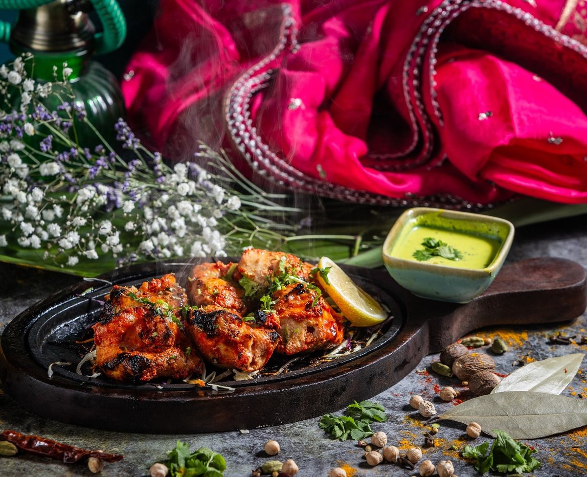 Filézett tandoori csirkedarabok, vajas-tejszínes szószban elkészítve // Tender pieces of boneless tandoori chicken cooked in a buttery and creamy sauce