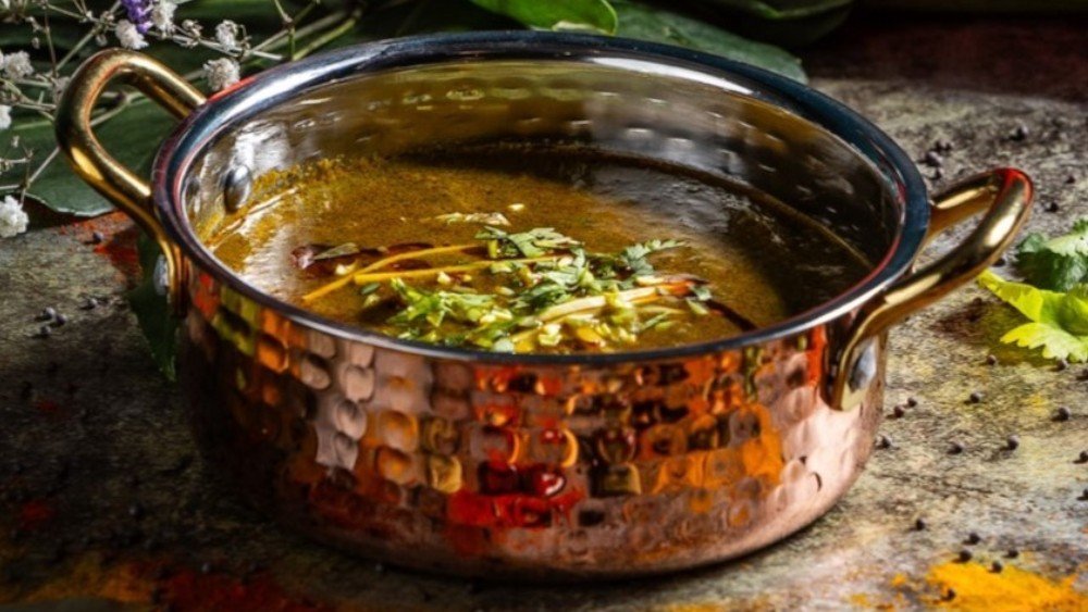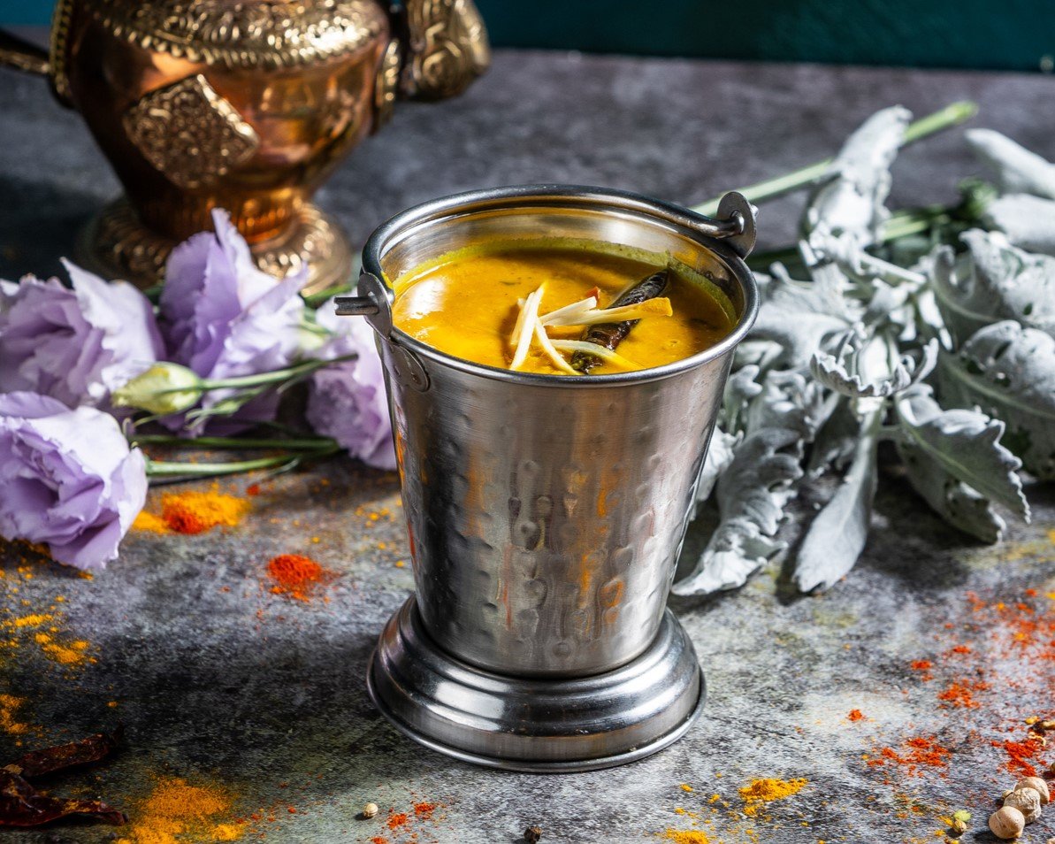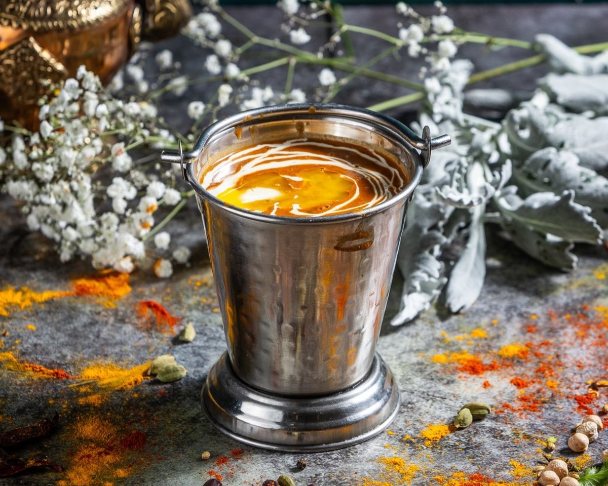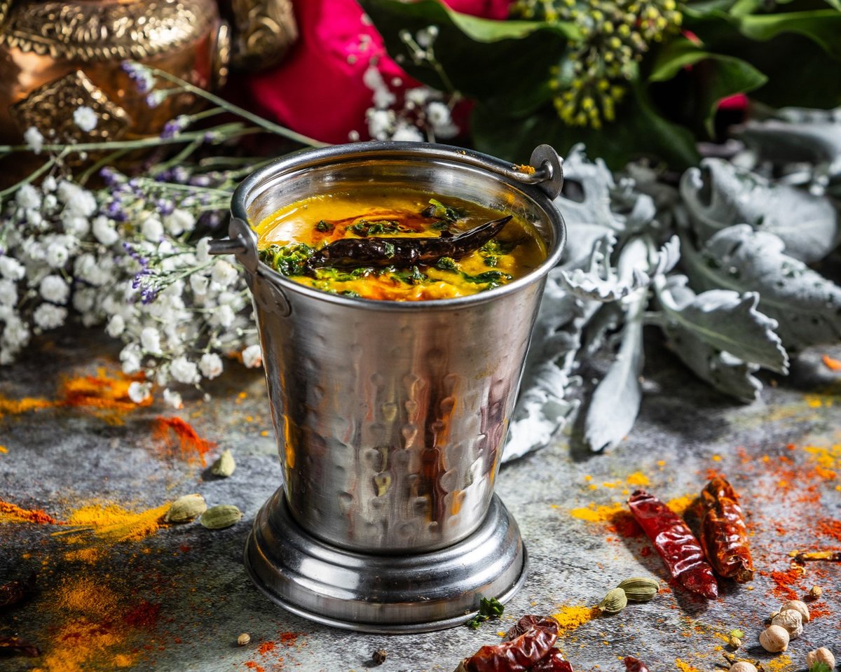 Tradicionális módon készített pirított indiai fűszerekkel ízesített főtt sárgalencse // Traditional cooked yellow lentils with tempered Indian spices