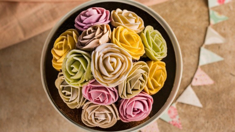 Egyedi olasz technikával, gyönyörű rózsa formába kenjük kizárólag természetes alapanyagból főzött fagylaltjainkat.
