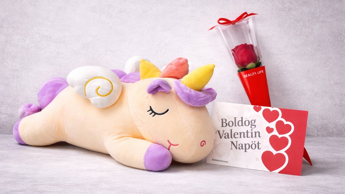 Valentin napi ajándék szett - plüss, csokor, kártya