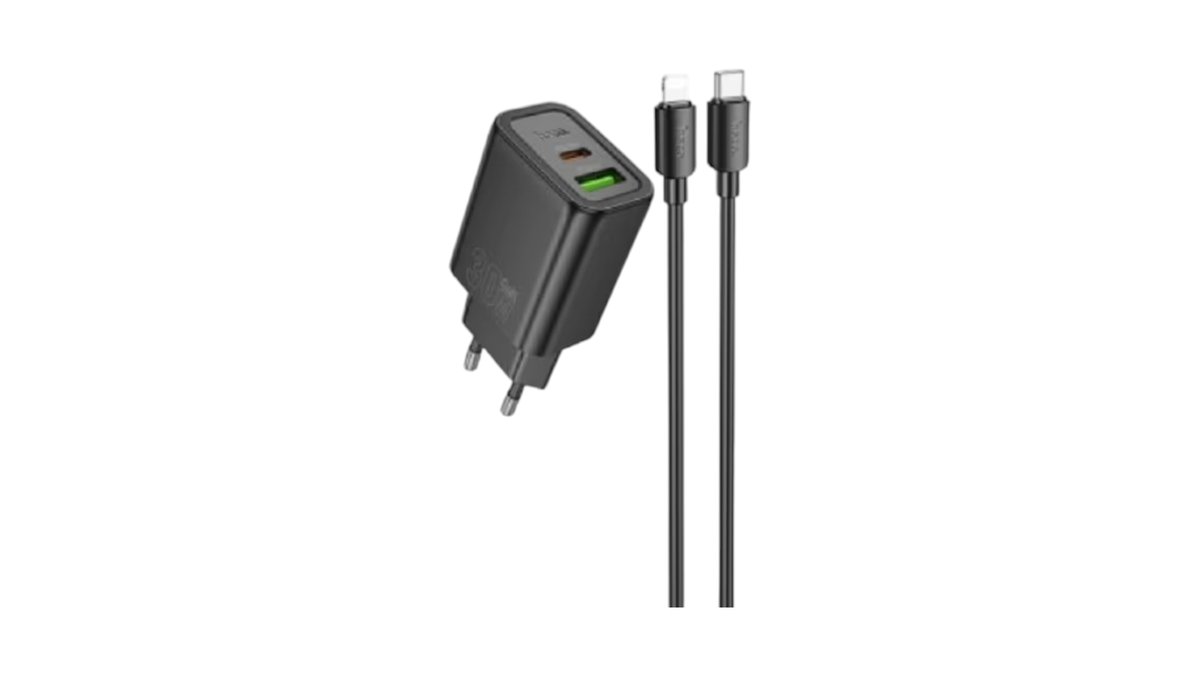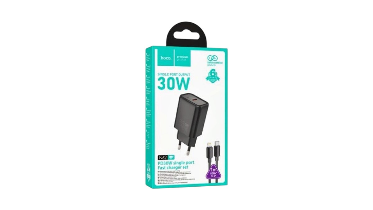 HOCO N62 GENTLE HÁLÓZATI GYORSTÖLTŐ (TYPE-C) (PD)30W LIGHTNING/TYPE-C KÁBELLEL FEKETE