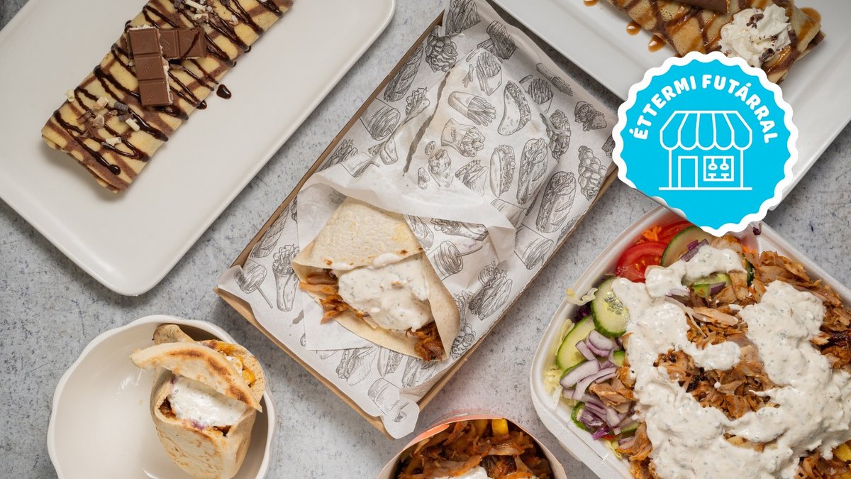 Pizza, gyros, hamburger, tortilla, roston sült csirkemell, saláta, sütemények, pékáruk.
