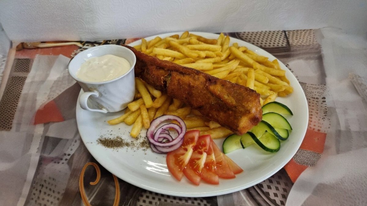 Fish & Chips rántott tőkehalfilé sült burgonyával és pikáns majonézes mártással
