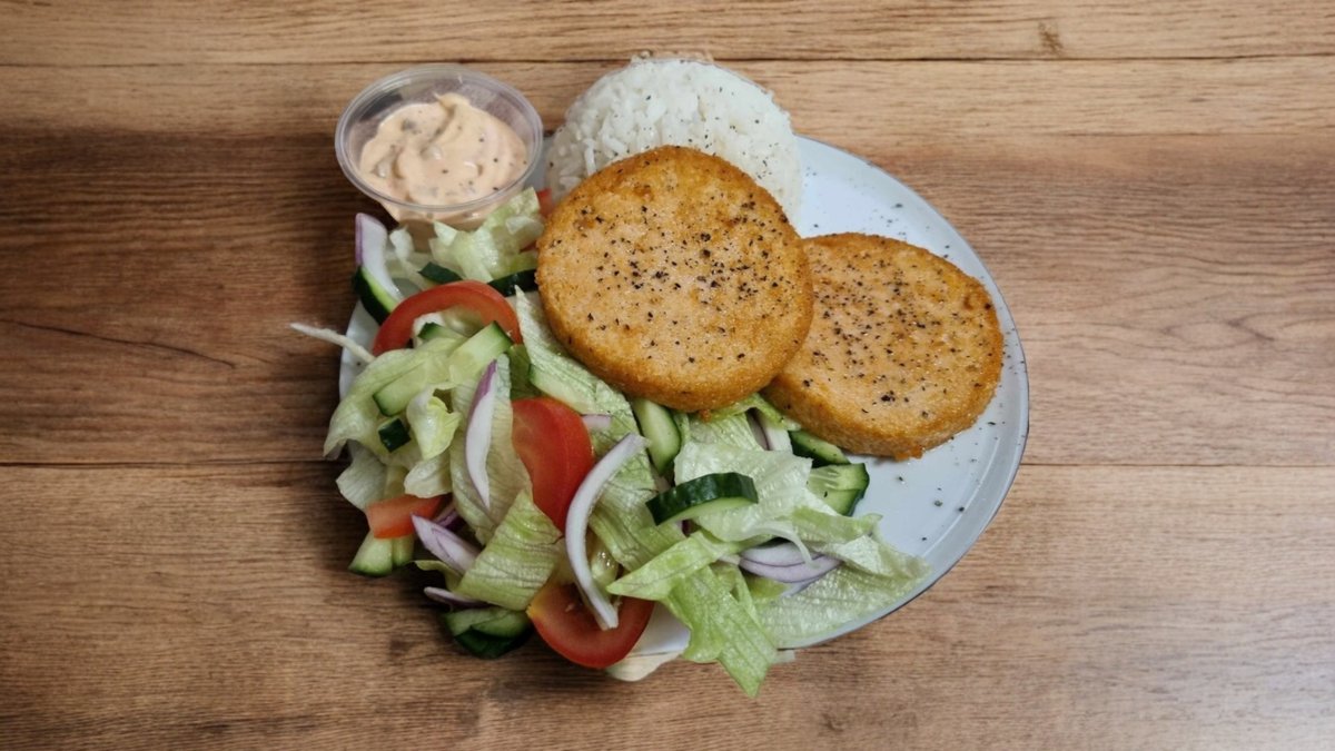 Rántott sajt rizzsel, tartárral