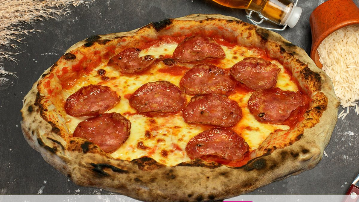 Olasz paradicsomos alap, mozzarella, bazsalikom, szalámi, parmezán