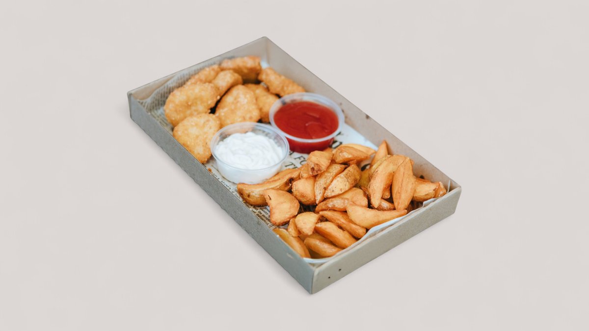 Kiadós adag: 8 db aranybarna nuggets, steakburgonya és 2 szósz ajándékba!
