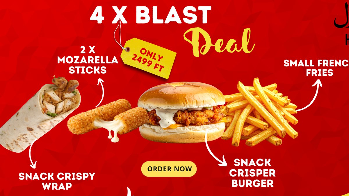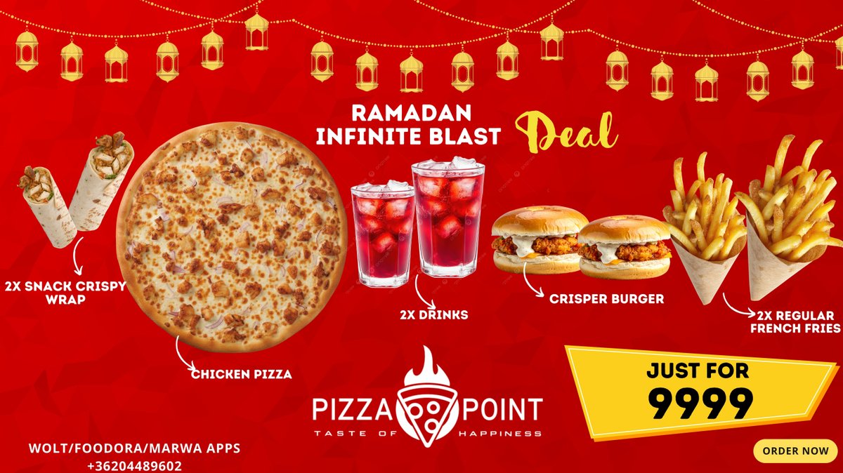 RAMADAN INFINITE DEAL ( CHIKEN PIZZA, 2 DRINK, 2 BURGERS, 2 CRISPERS WRAP, 2 S FRIES)
