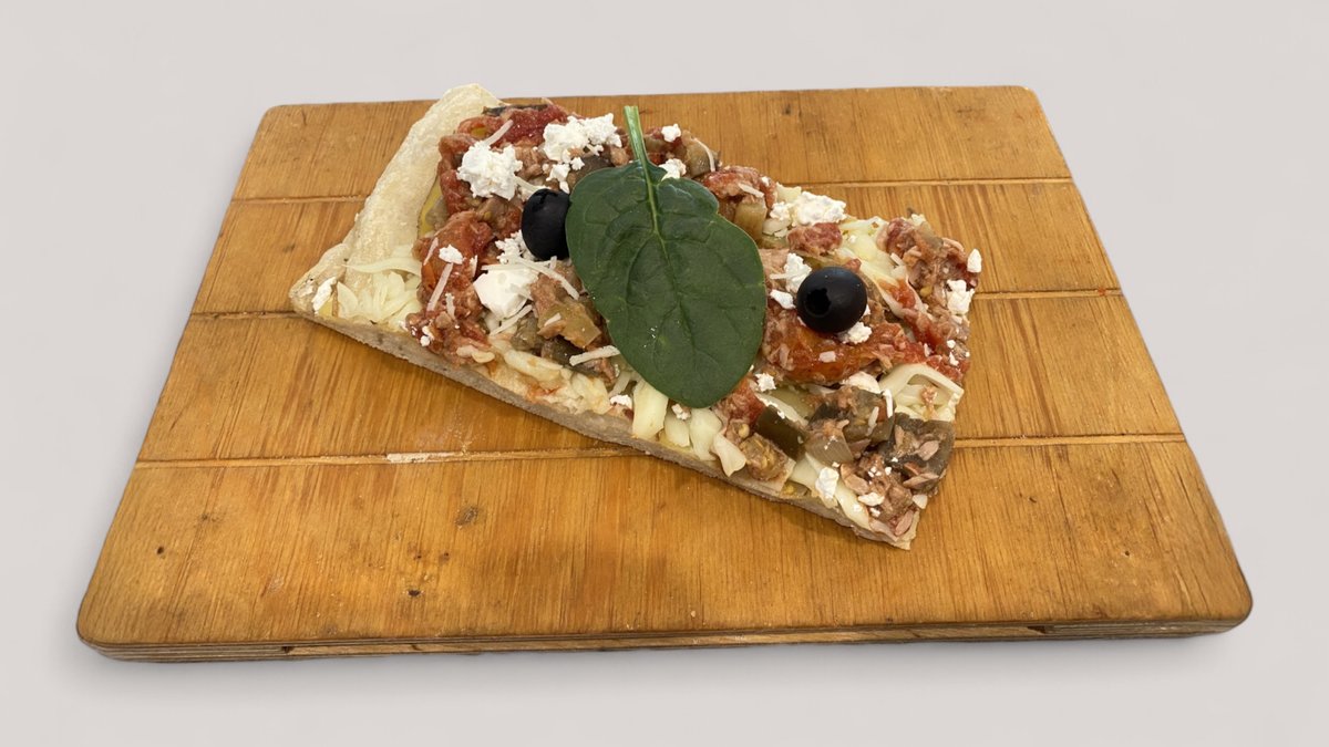 padlizsános, paradicsomos ragu, feta, burgonya chips alap, parmezán, tonhal
