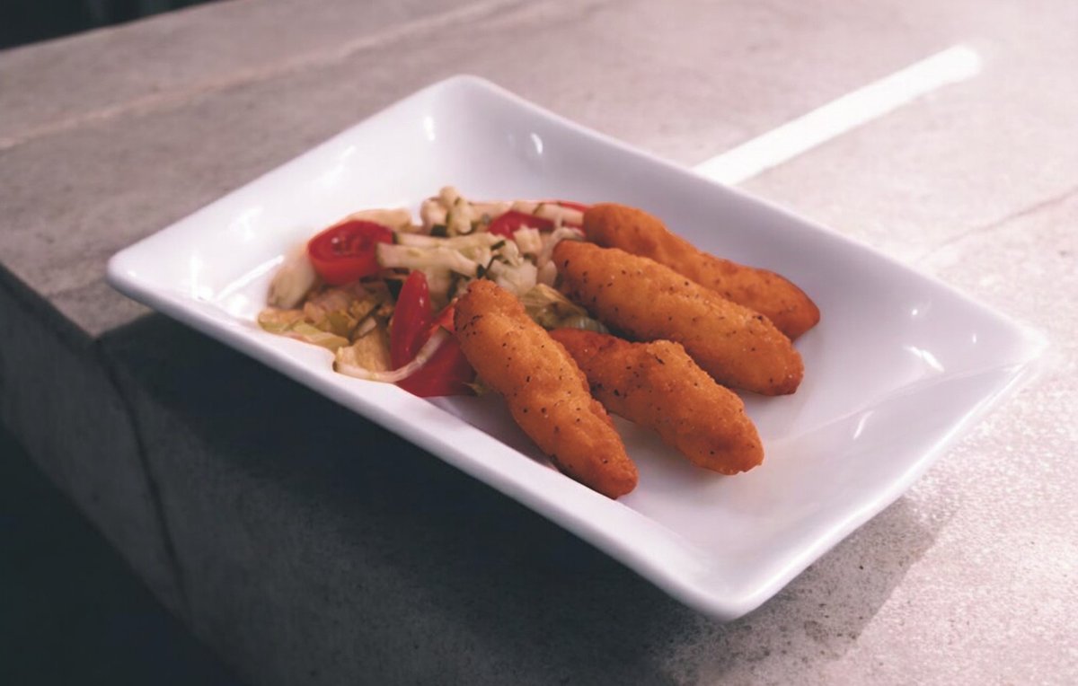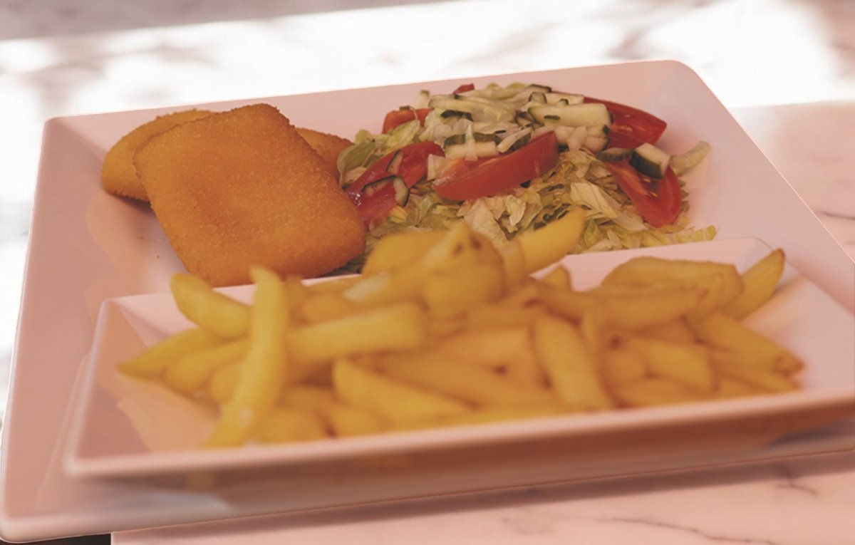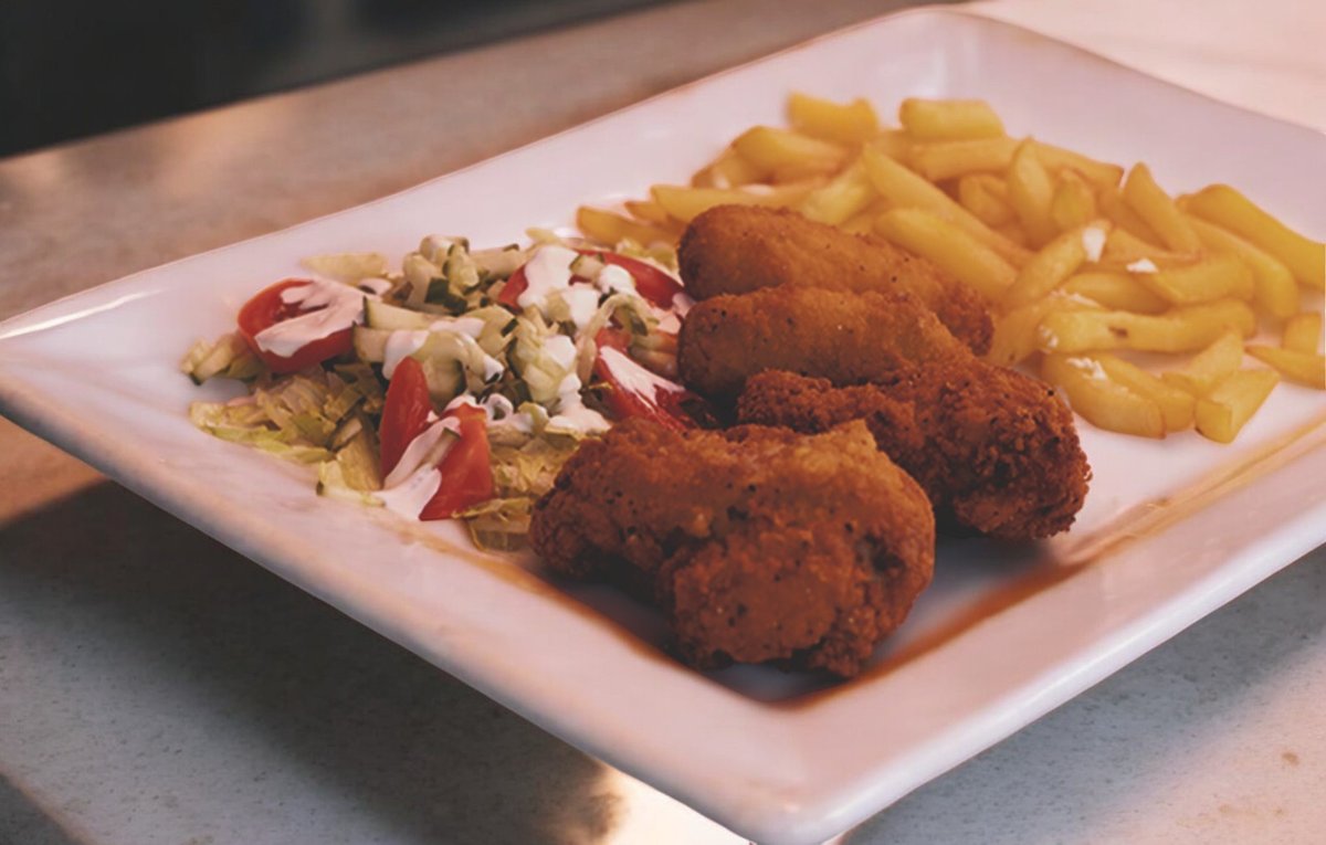rántott fűszeres csirkemell csíkok +sült krumpli