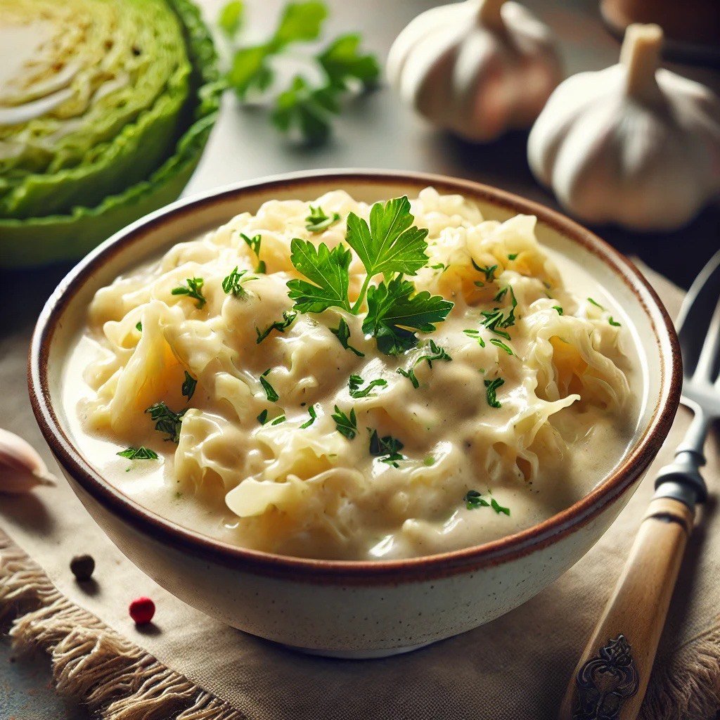 Székelykáposzta, szalvétagombóccal és fokhagymás tejföllel