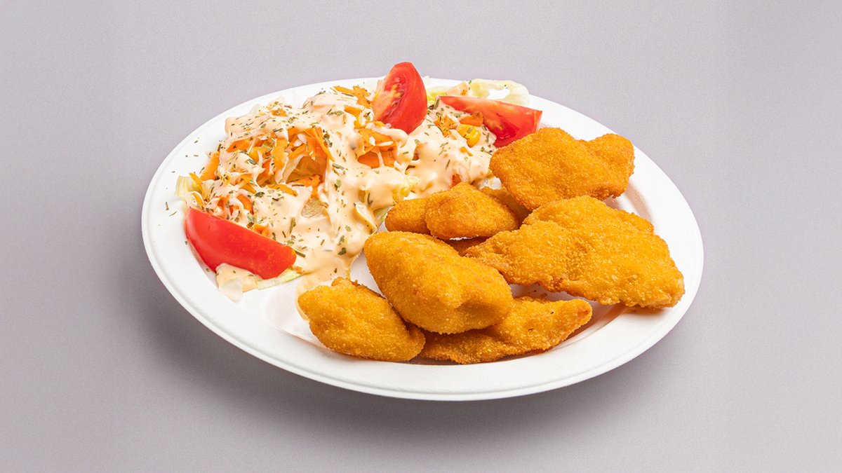 8 db csirkemell nuggets, primőr salátamix, ezersziget öntet- a kép illusztráció
