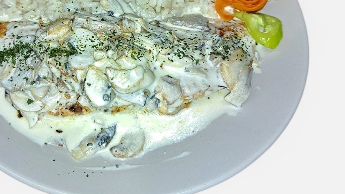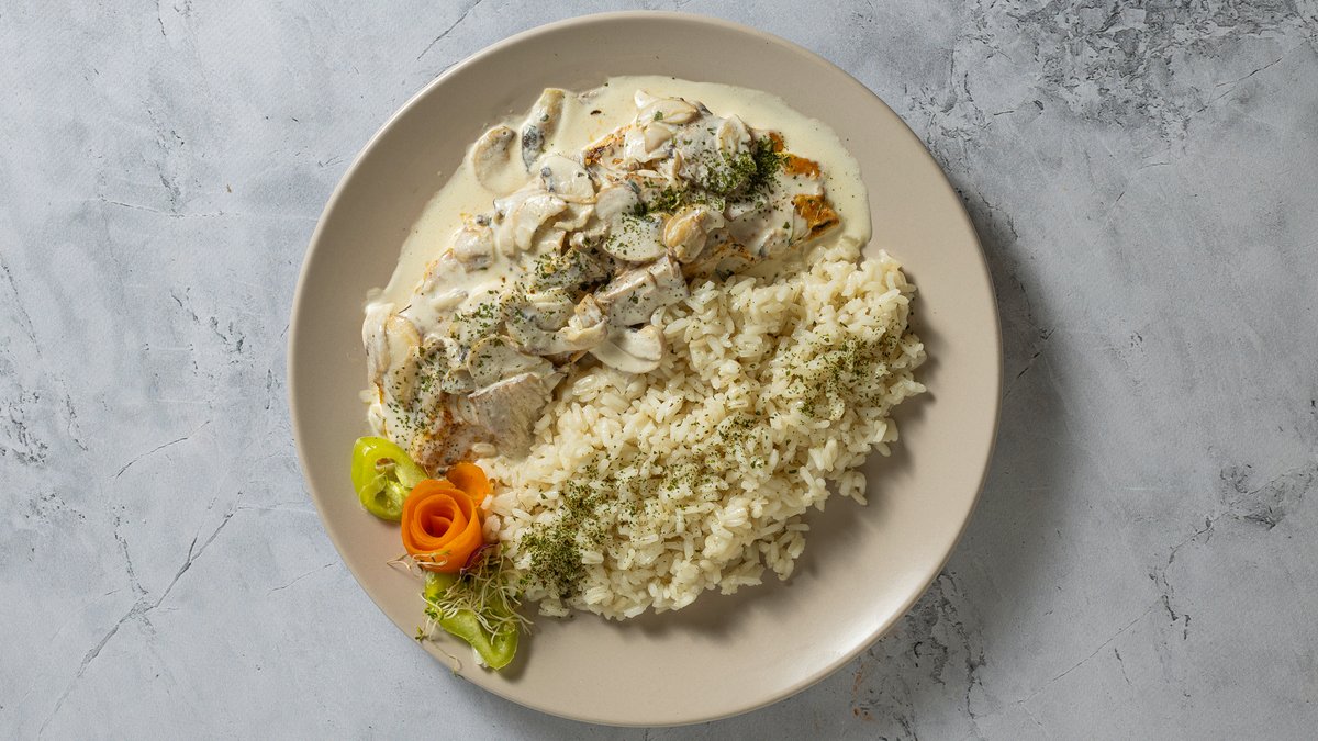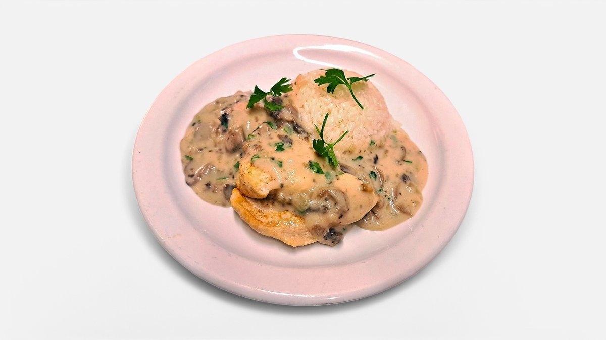 Roston sült csirkemell tejszínes gombamártással