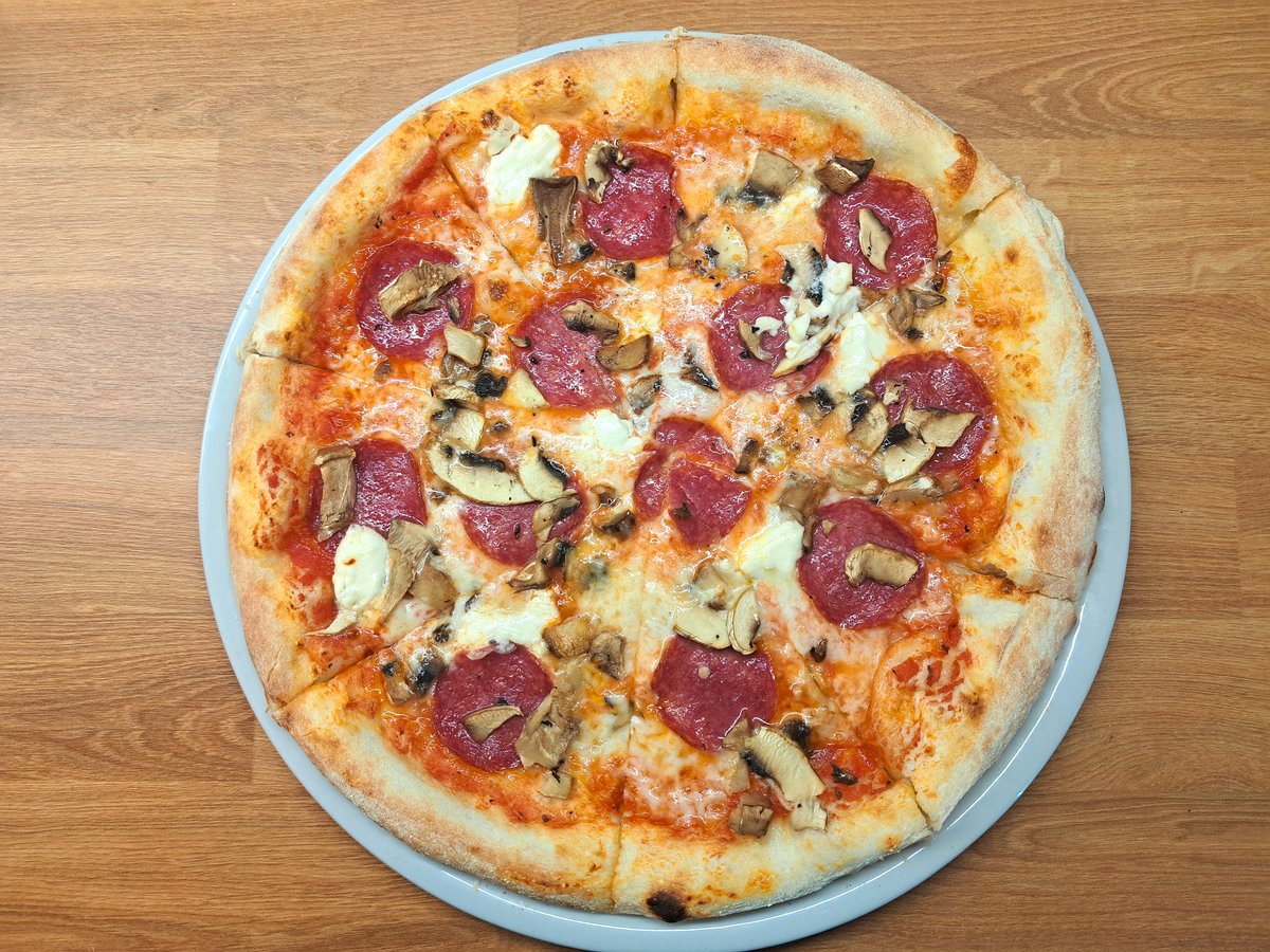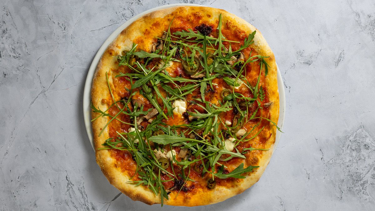 paradicsomszósz mozzarella, Nduja-olasz kolbász, csípős szalámi, gomba, mascarpone, jalapeno, rukkola