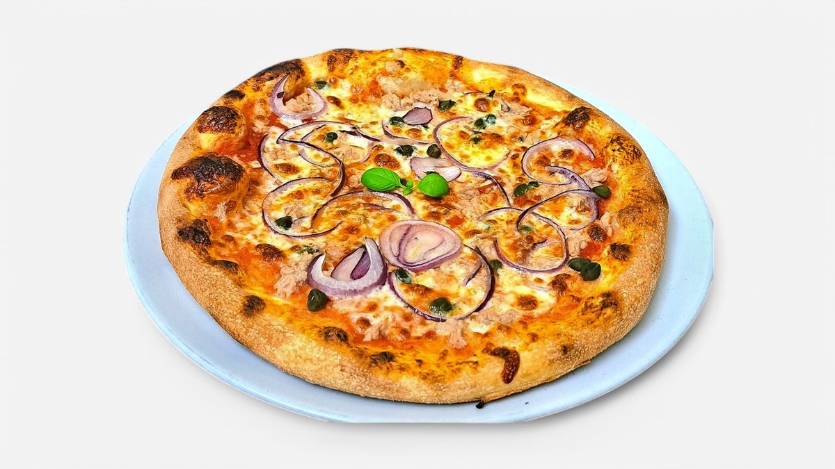 tejfölös alap, mozzarella, füstölt sajt, sonka, bacon, hagyma, paprika