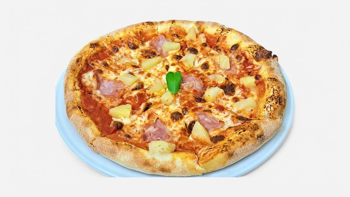 paradicsomszósz mozzarella, sonka, ananász