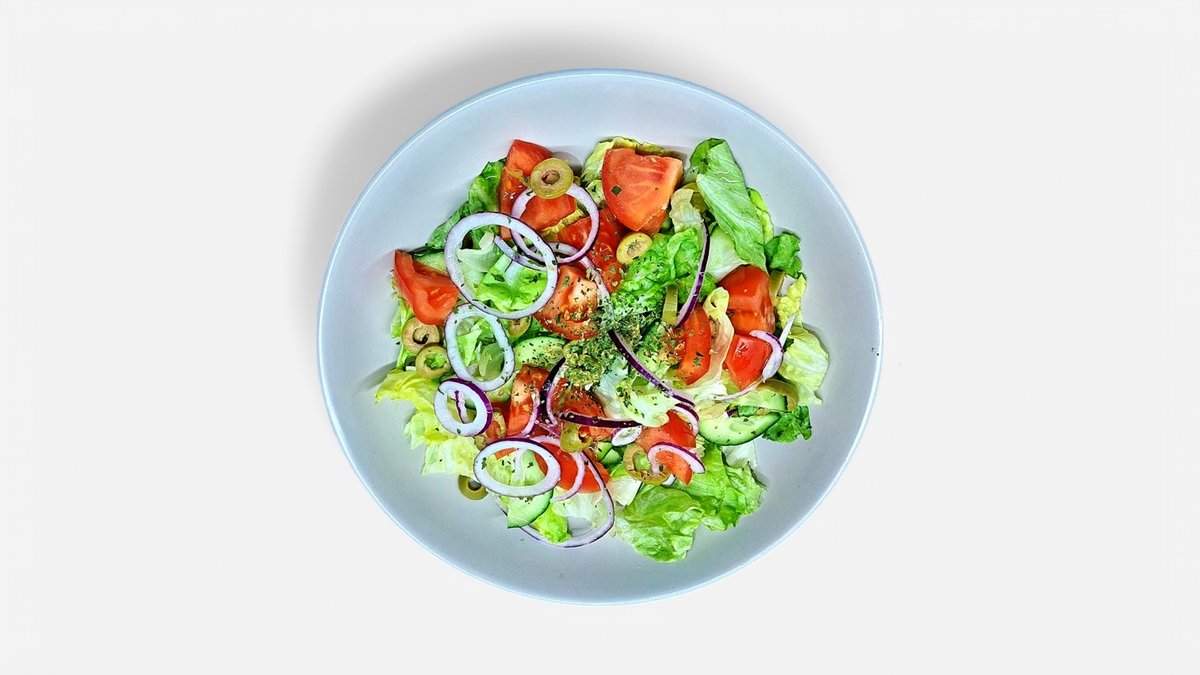 Jégsaláta, paradicsom, uborka, paprika, olivabogyó