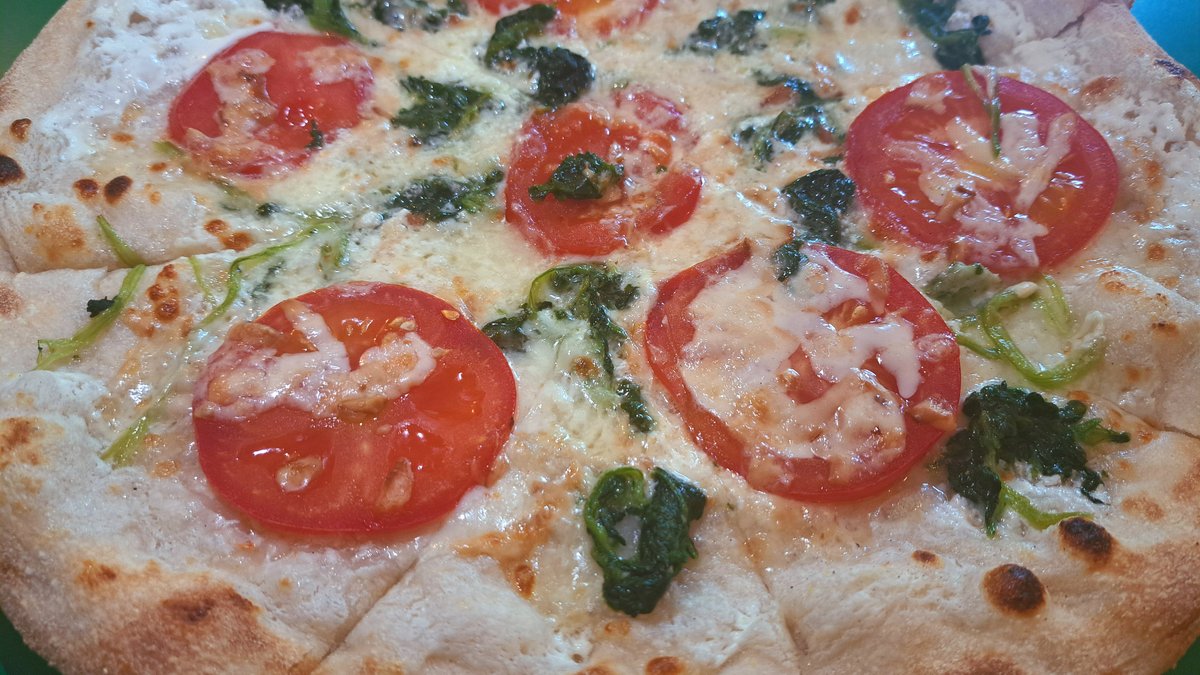 tejfölös alap, mozzarella, spenót, füstölt sajt, paradicsom