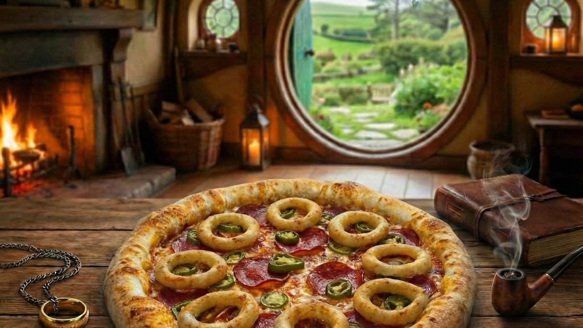 Paradicsomos alap, szalámi, jalapeno, sajt, panírozott hagyma karikák