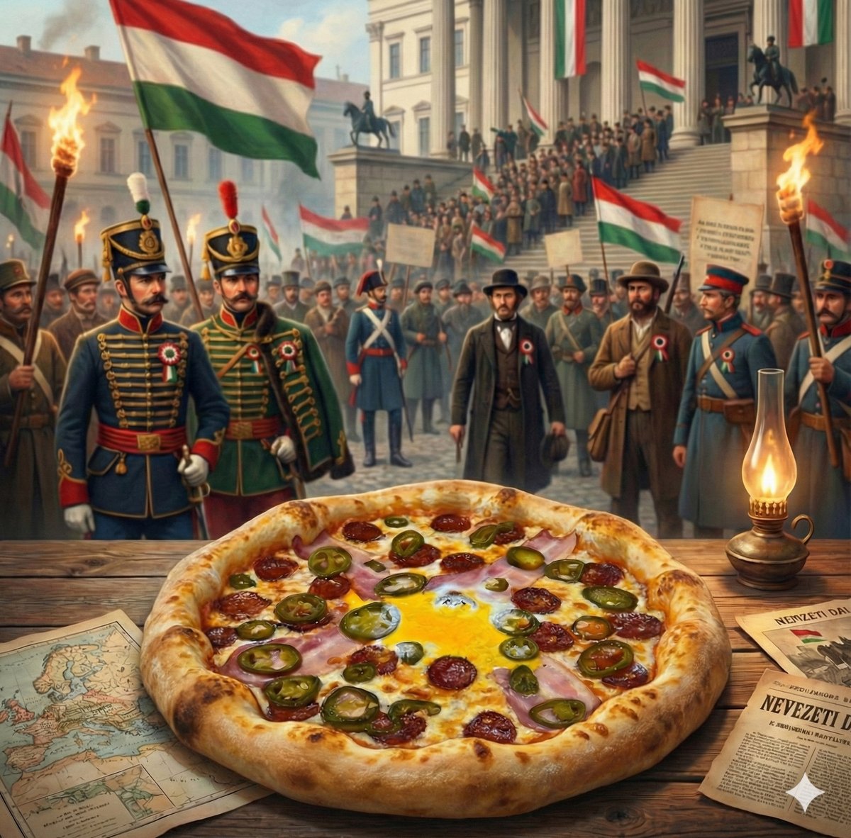 Csípős alap, sonka, sajt, kolbász, 1 szelet halál csípősen