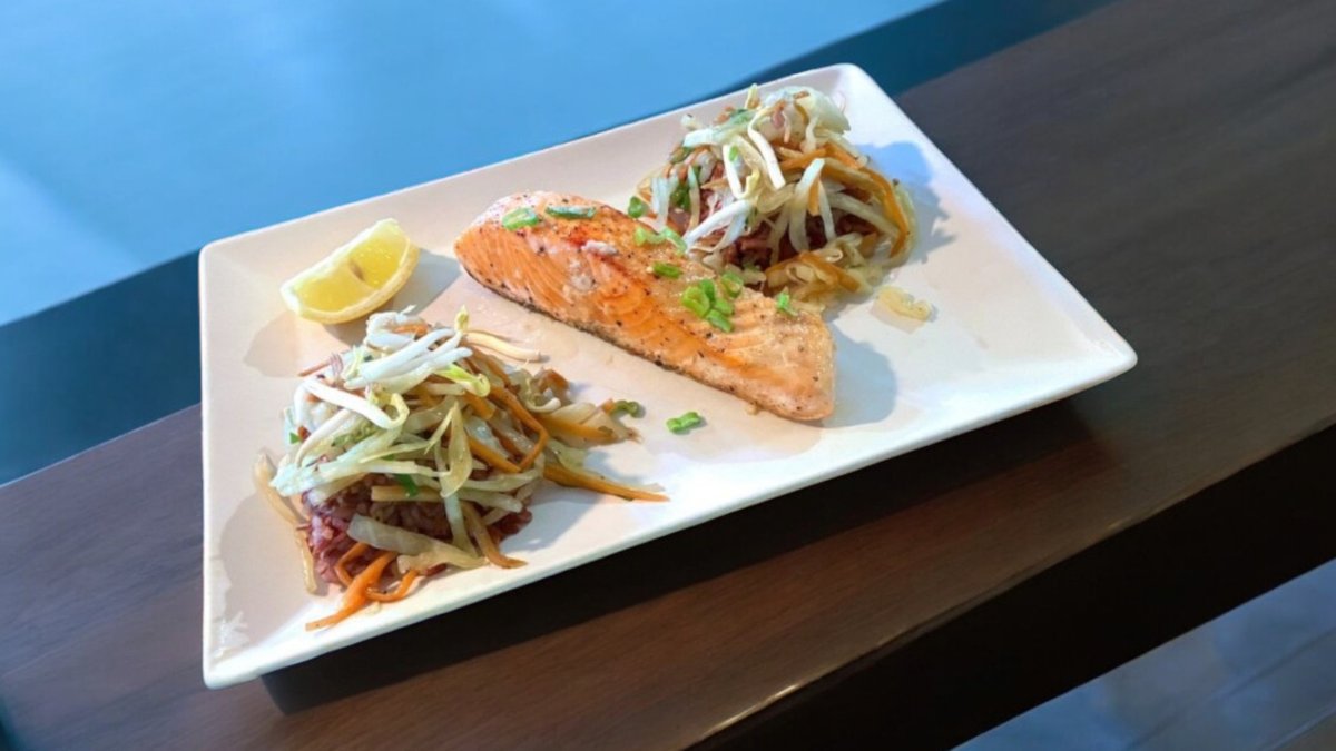 fokhagymás olajban, thai vörös jázmin rizzsel, roppanós zöldségekkel (a kép illusztráció)