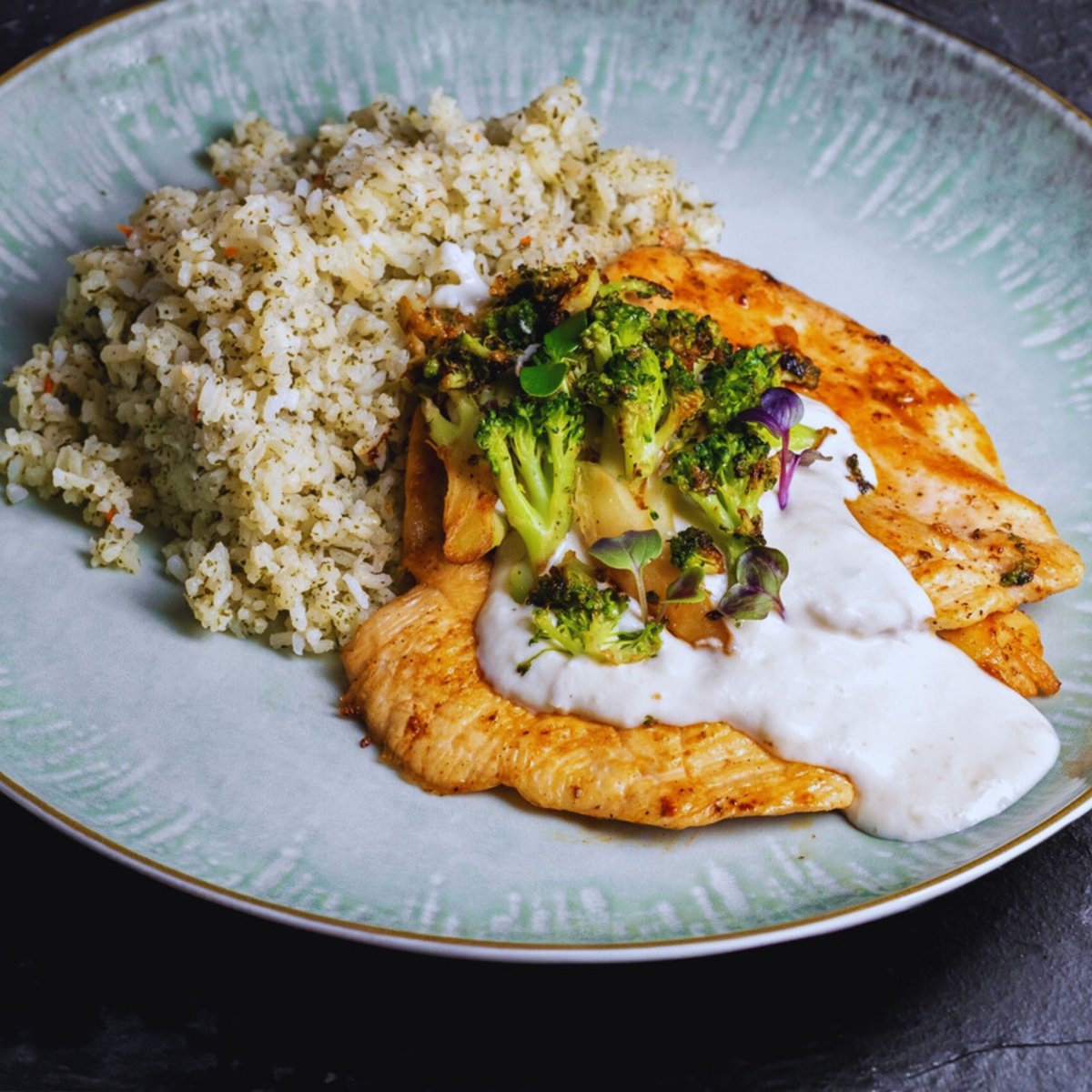 Sajtmártásos roston csirkemell grillezett brokkolival, rizzsel