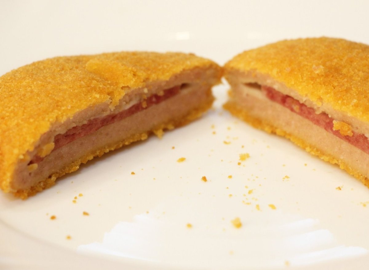 Rántott hús, saláta, hagyma, paradicsom, uborka, hamburgerszósz