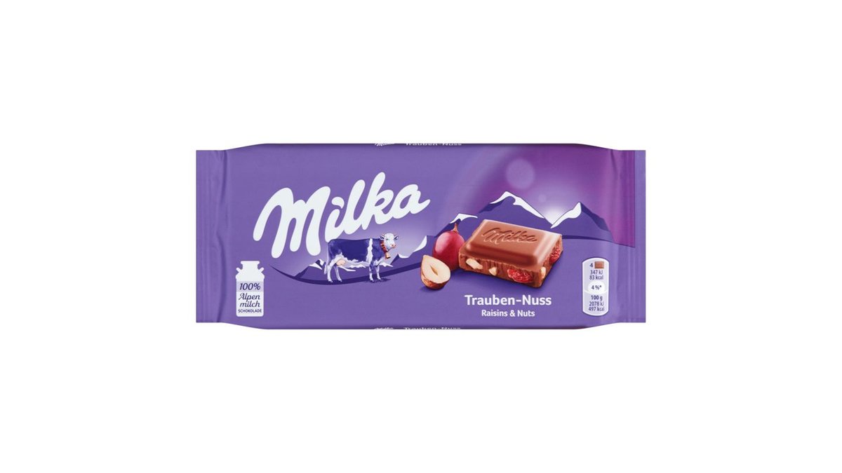 Milka Alpesi Tej Felhasználásával Készült Tejcsokoládé Mazsolával és Mogyoródarabokkal 90 G