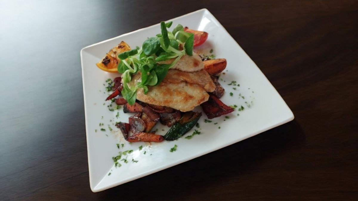 Vaslapos csirkemell sült zöldségekkel