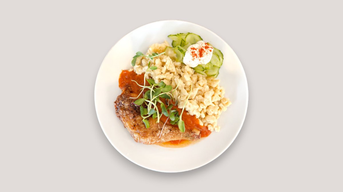 Paprikás csirkecomb tócsnival, tejföllel