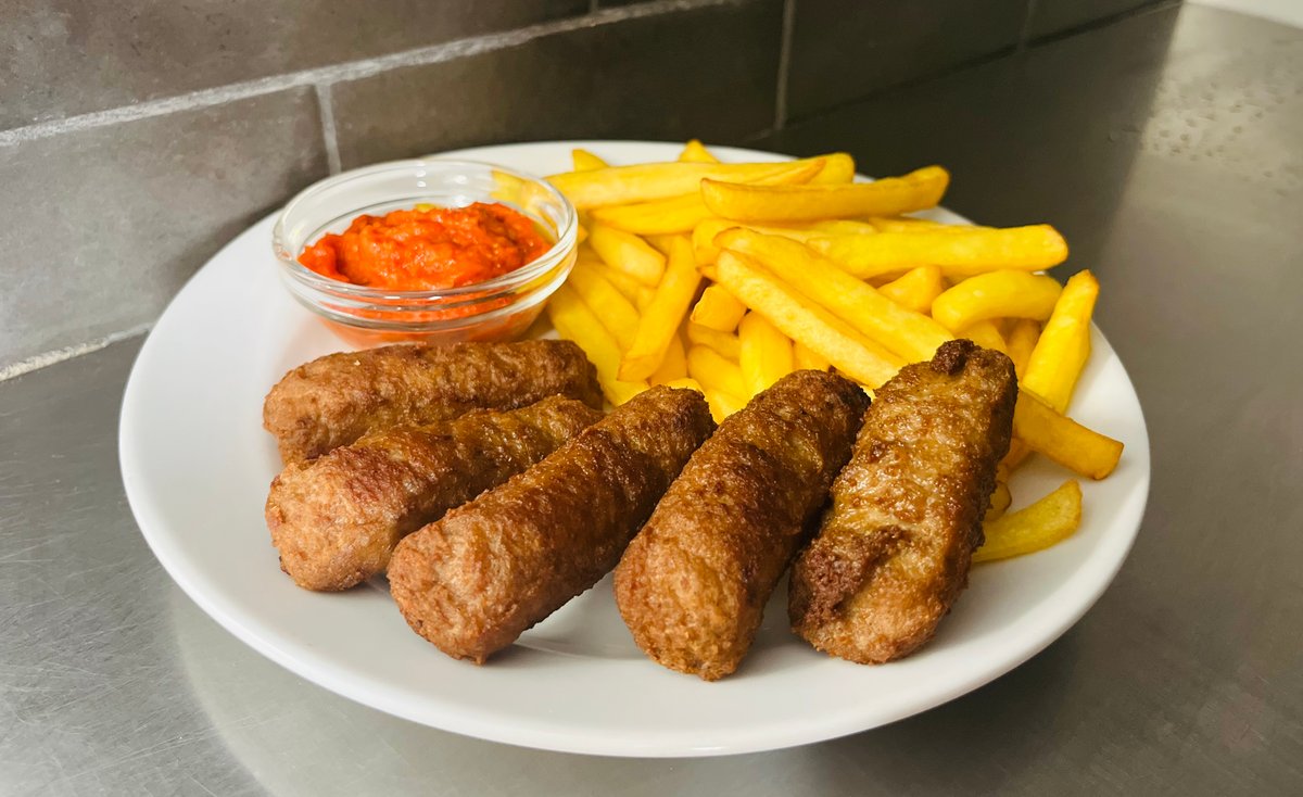 5db csevapcsicsa (sertés és marhahúsból) hasábburgonyával és ajvárral
