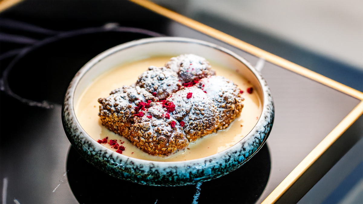 Aranygaluska, vanília szósz, dió