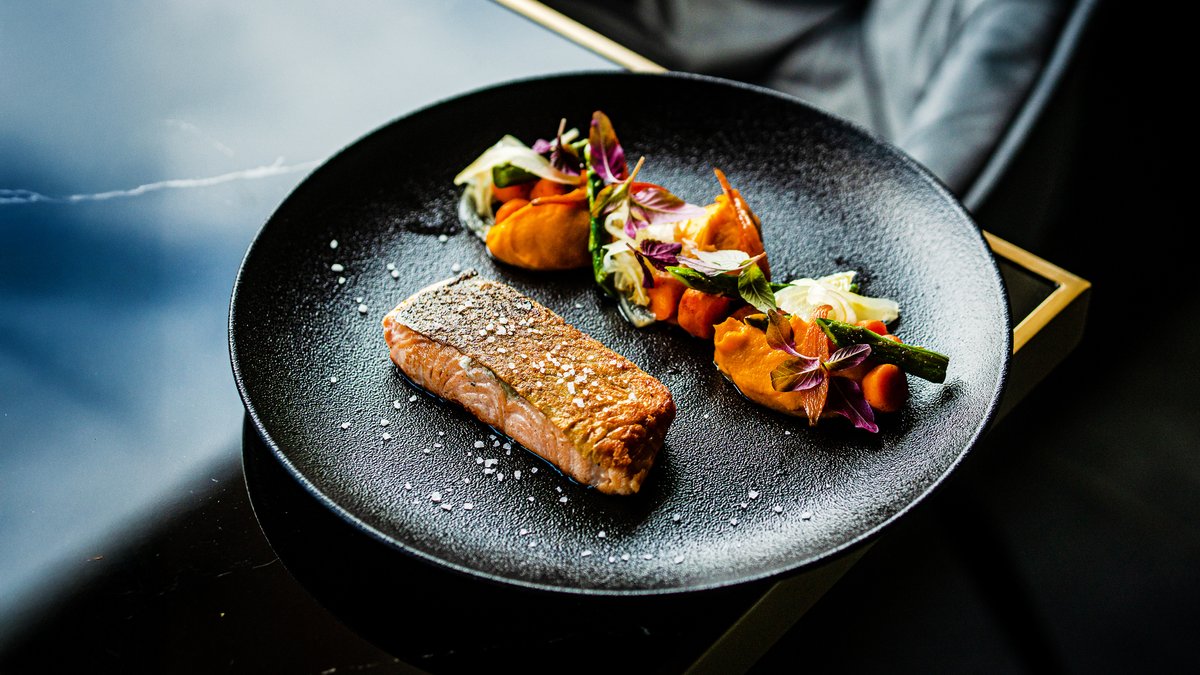 Norvég lazac, grillezett zöldségek, céklagél