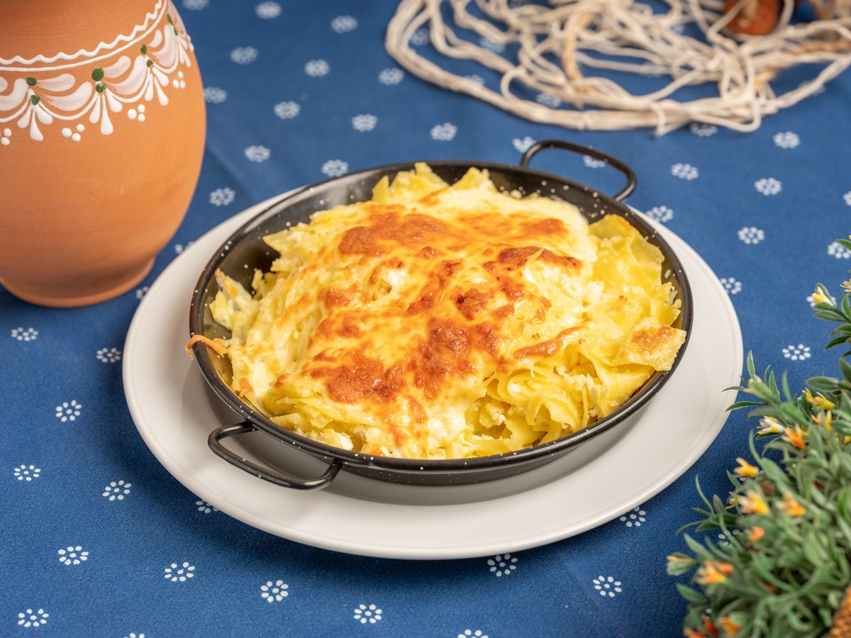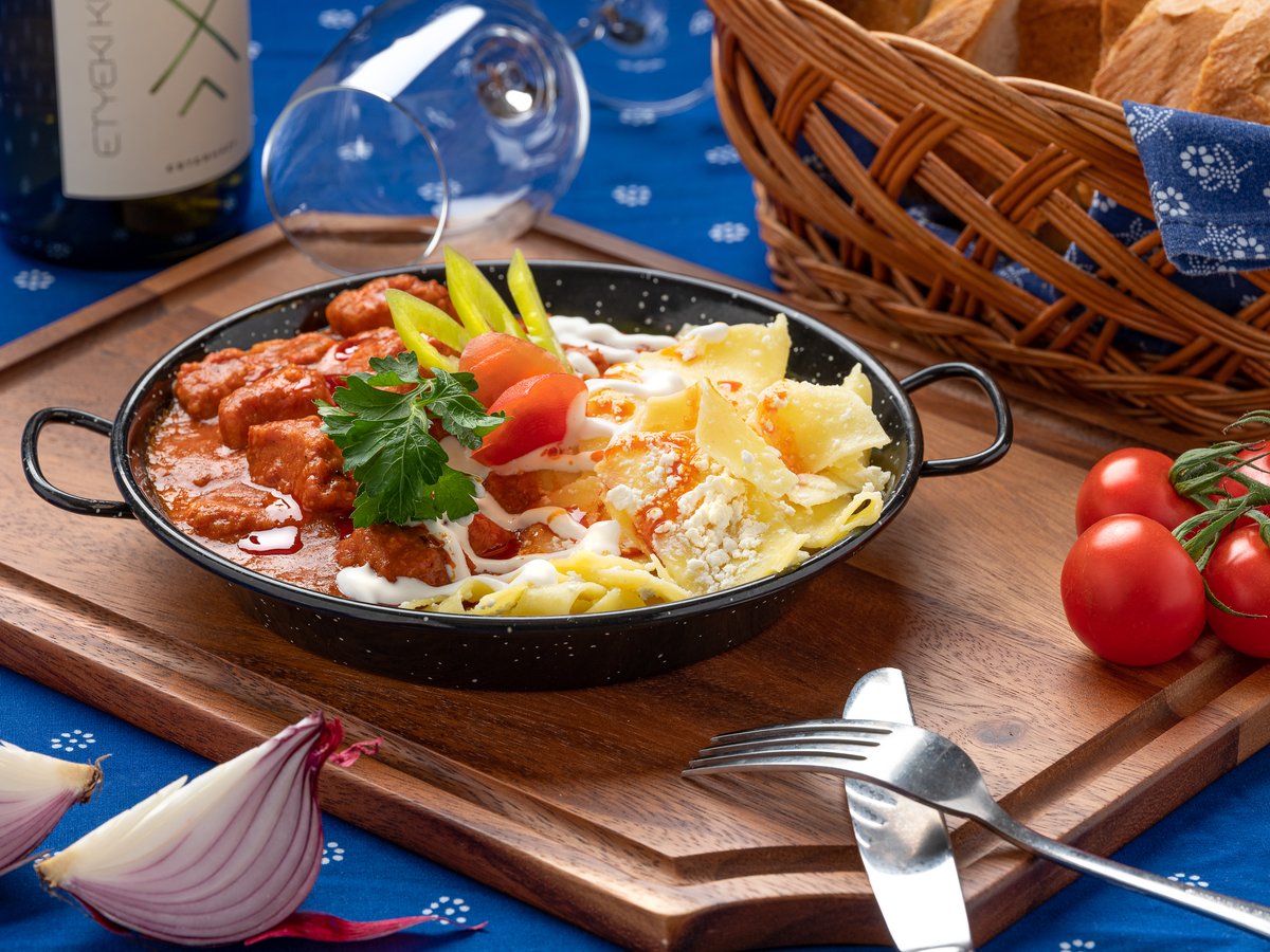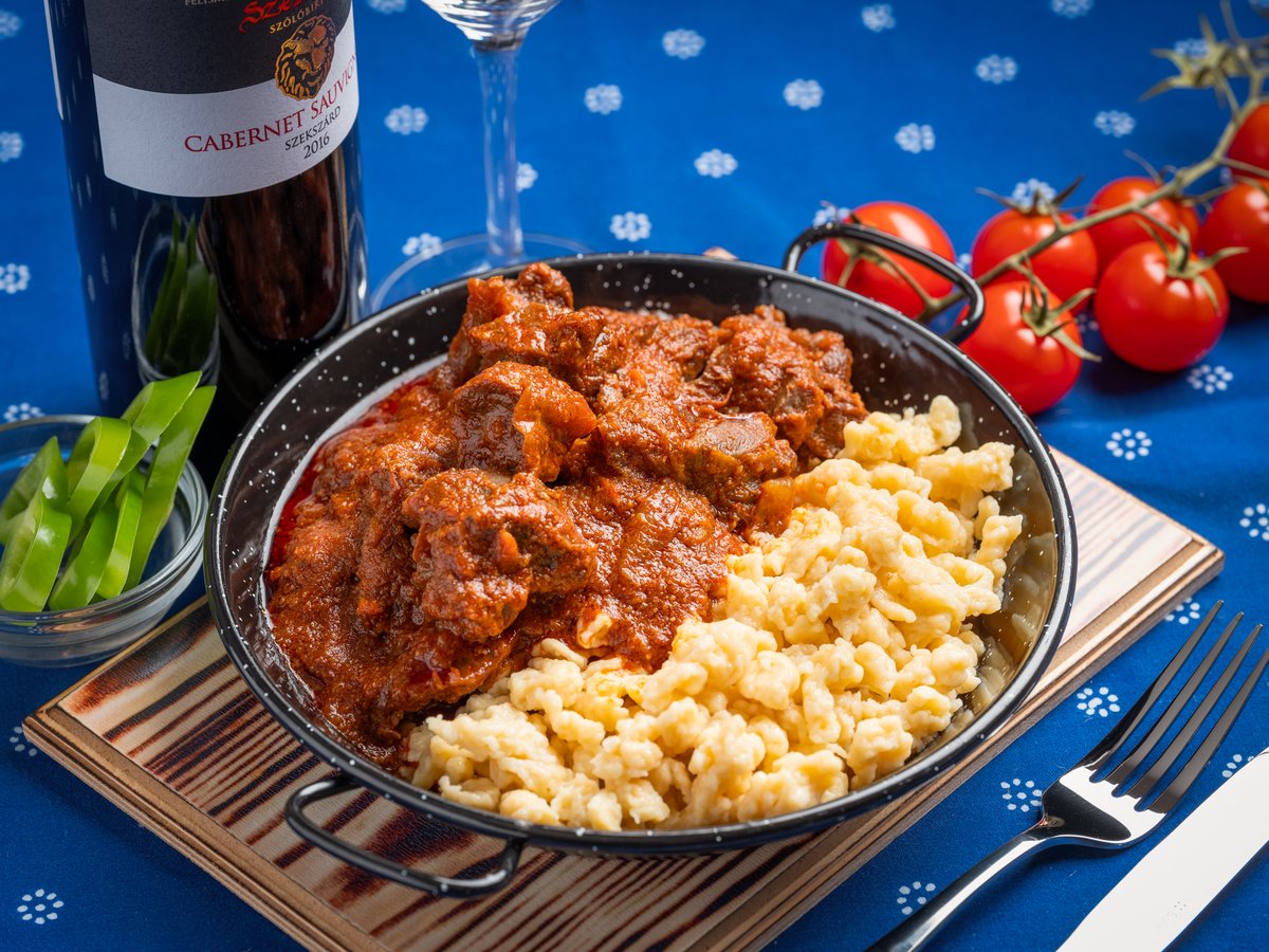 Paprikás harcsafilével, túrós csuszával és tejföllel tálalva/Stew with catfish filets, served cottage cheese pasta and sour cream