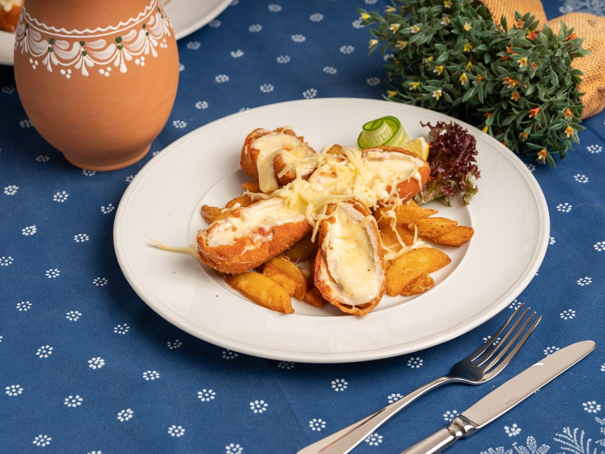sajttal, sonkával töltve (Köretet nem tartalmaz.)